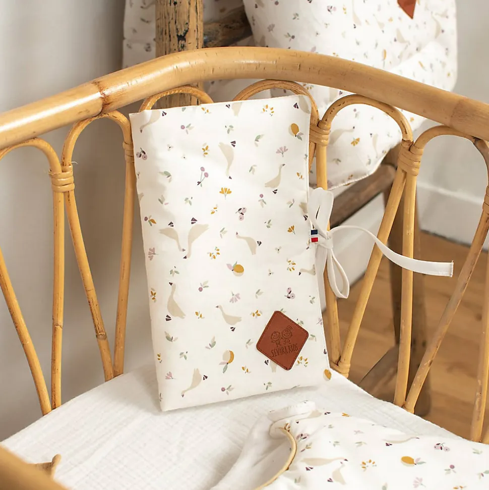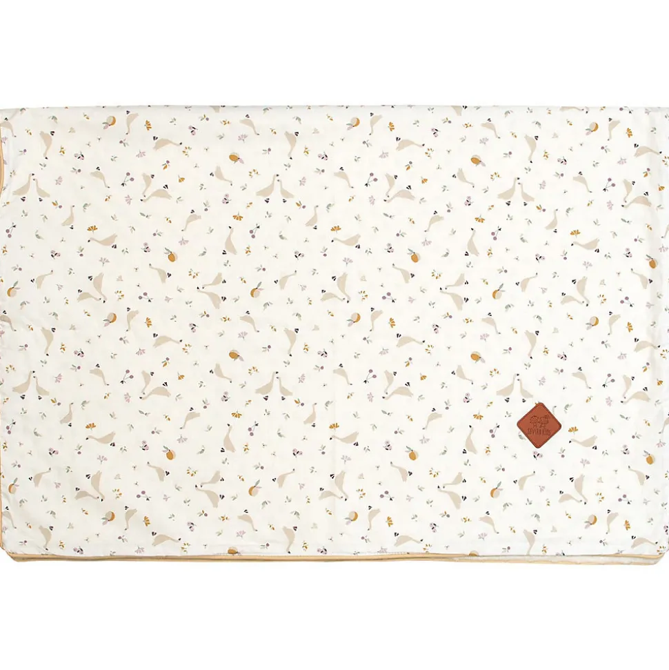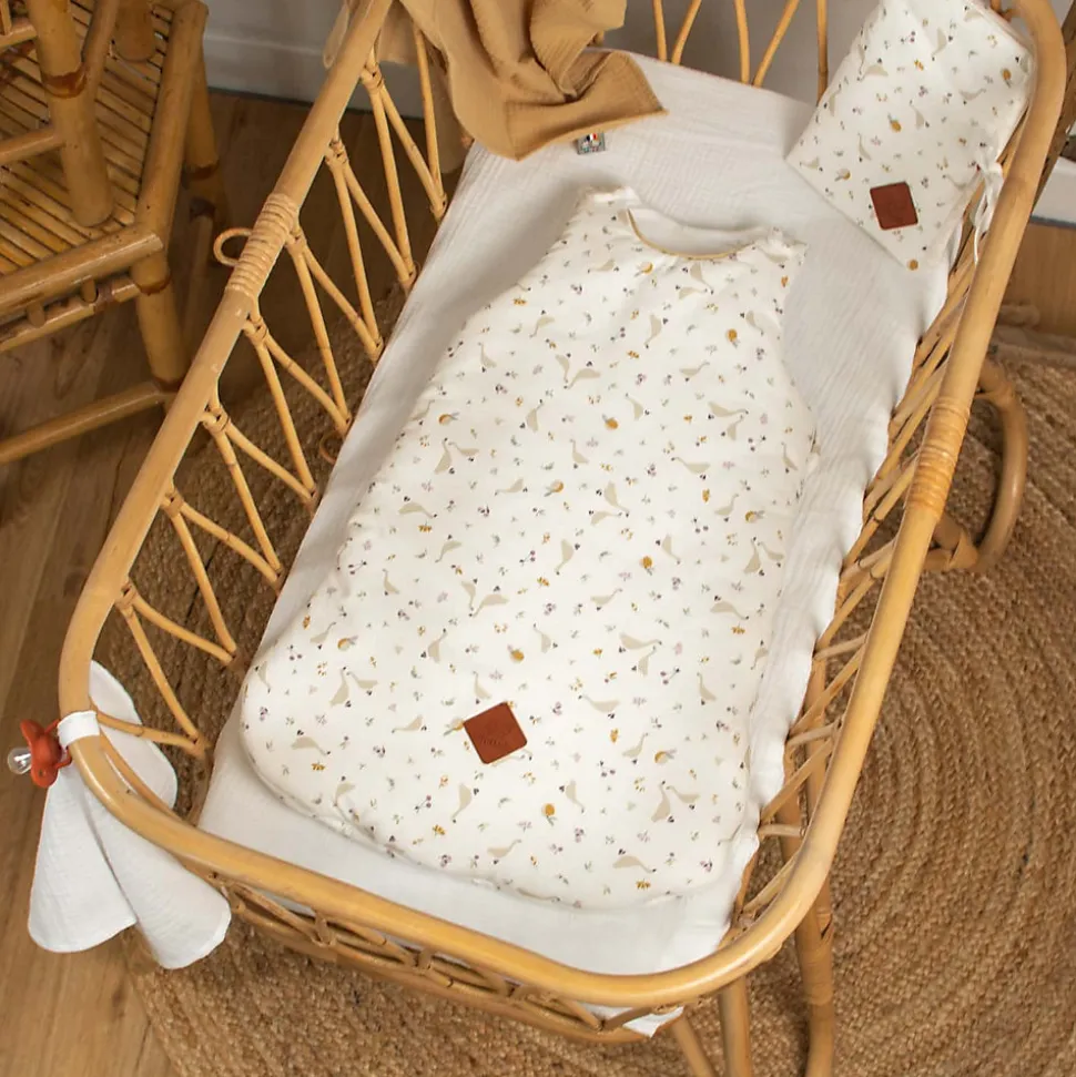 - Design champêtre et apaisant : Avec ses motifs de fleurs et petites oies, et ses teintes chaleureuses, elle crée une atmosphère cocooning et décore joliment l’univers de bébé.
