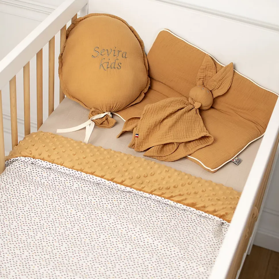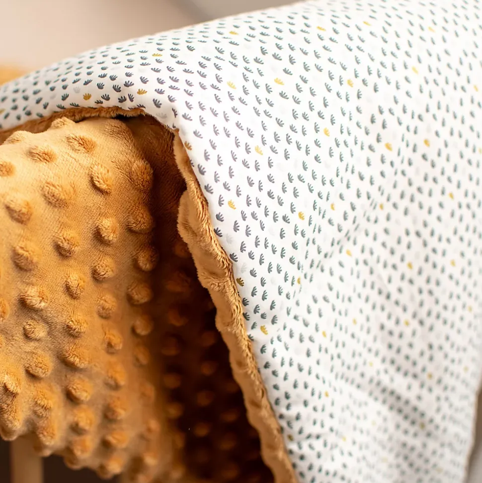 Couverture Réversible en Coton et Minky Lior : Élégance et Douceur pour Votre EnfantDécouvrez la toute nouvelle couverture réversible Lior, une nouveauté qui apporte une touche d’élégance intemporelle à la chambre de votre enfant. Avec son design chic composé de mini motifs en un mélange raffiné de gris et doré, cette couverture incarne la modernité et le style. Elle est parfaite pour apporter confort et sophistication au quotidien, que ce soit pour les sorties, le lit à barreaux, ou le couffin. Un cadeau idéal pour votre tout-petit.Confort exceptionnel : Une face en minky ultra-doux dans une teinte neutre pour un toucher réconfortant et une chaleur agréable, idéale pour les moments de détente.Réversible : Changez de look selon vos envies grâce à une face en coton aux mini motifs chics et élégants, et une face en minky douce et confortable.Polyvalente : Idéale pour les moments cocooning sur le canapé, comme couverture pour les nuits paisibles, ou pour accompagner bébé lors de vos sorties.: Offrez un cadeau unique en personnalisant la couverture avec une . Créez un souvenir mémorable pour les premiers mois de votre bébé.Esthétique et pratique : Une face en coton avec des motifs gris et dorés, ajoutant une touche de chic intemporel à la décoration de la chambre de votre enfant.Fabriqué en France : Confectionnée avec soin dans nos ateliers à Compiègne, chaque couverture garantit la qualité et le savoir-faire français.Éco- : Fabriquée dans un circuit court pour réduire l’empreinte carbone et promouvoir une production .Découvrez la Collection LiorLa collection Lior est la toute dernière nouveauté signée Sevira Kids