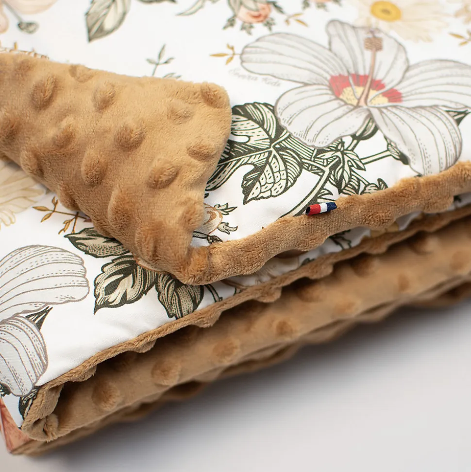 - Douceur réversible : Une face en minky extra-doux couleur camel et une face en coton avec un magnifique imprimé floral rétro chic pour varier les styles.
