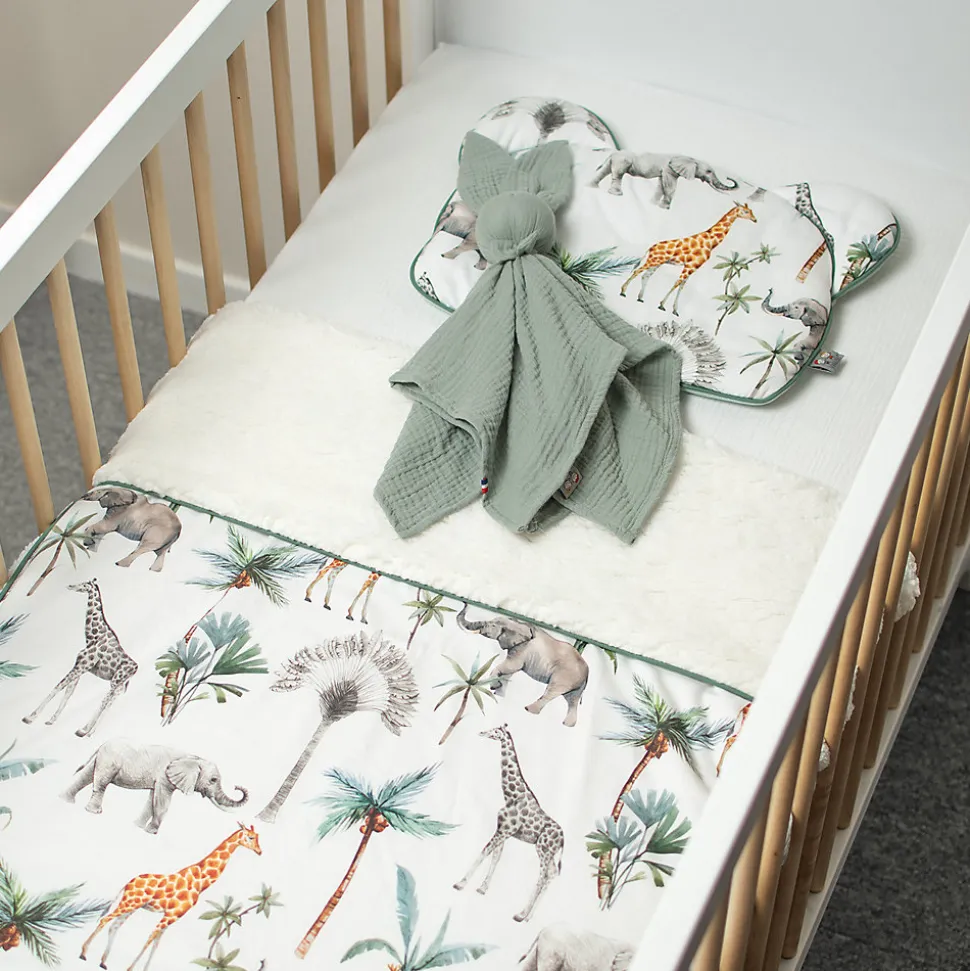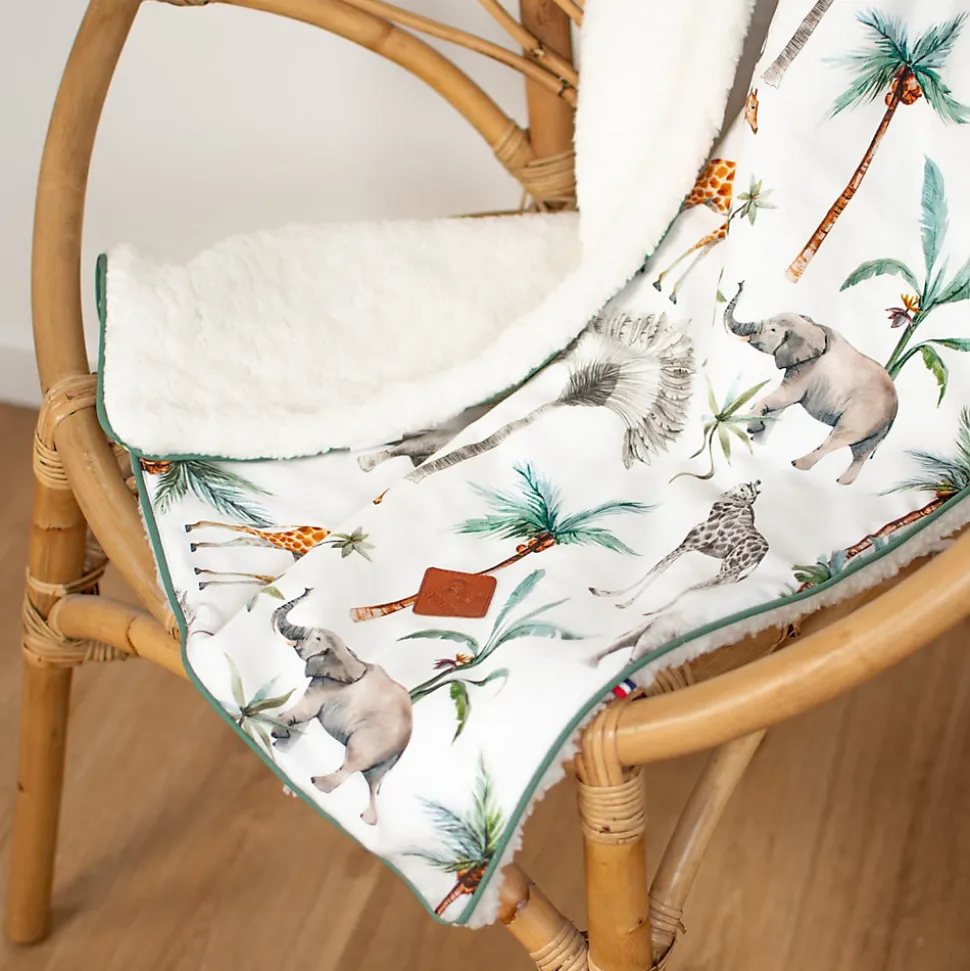 La couverture réversible bébé en Sherpa Safari enveloppera de douceur et de chaleur votre enfant au quotidien. Fabriqué en France.