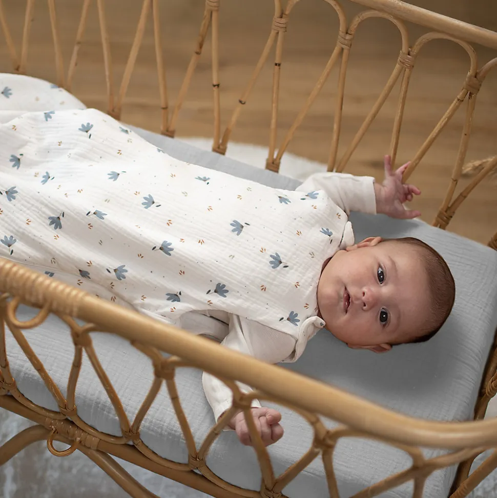 Découvrez notre lot de 3 draps housses pour berceau en double gaze de coton blanc, bleu et gris. Tailles 40×80 cm, couleurs variées, fabriqués en France