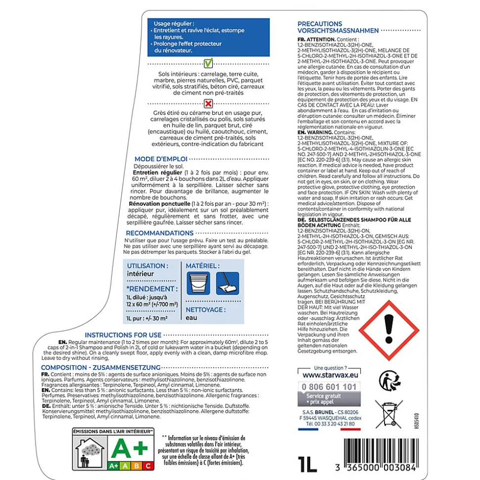 Shampoing autolustrant 2 en 1 tous sols intérieurs Starwax 1L