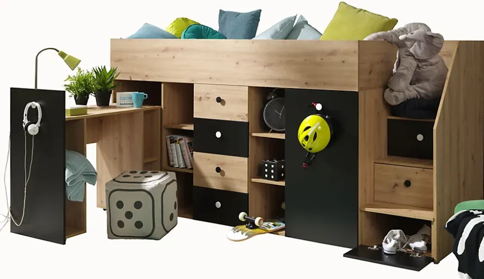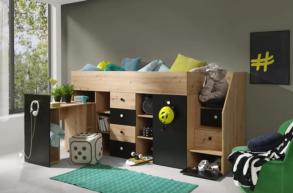 - SMART 3P Lit superposé 248,5/123/93 (artisan/noir)