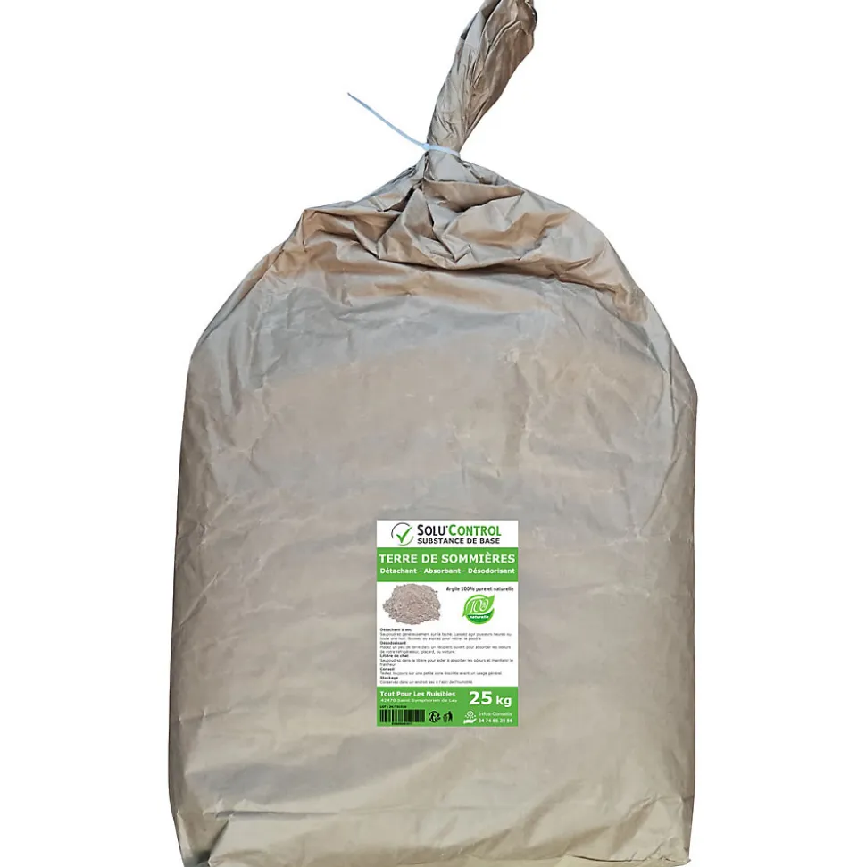 La terre de Sommières est une argile 100 % naturelle.Idéale comme détachant puissant pour les textiles, le cuir et les sols. Elle élimine efficacement les taches tenaces et absorbe les odeurs désagréables sans utiliser de produits chimiques nocifs.Ce produit est également un allié de choix pour neutraliser les odeurs d’urine et maintenir les litières de chat fraîches et propres.Ce produit naturel et sûr convient parfaitement à tous les foyers. Présenté dans un sac de 25 kg, il offre une solution saine et économique pour vos besoins de nettoyage et d’assainissement. DÉTACHANT NATUREL : Cette terre de Sommières 100% argile pure et naturelle agit comme un puissant détachant pour textiles, cuirs et sols. ABSORBANT ET DÉSODORISANT : Élimine efficacement les taches tenaces et absorbe les odeurs désagréables sans produits chimiques. SACHET REFERMABLE : Pratique sachet zippé pour une utilisation facile et hygiénique. ARGILE 100% NATURELLE : ce produit est sûr pour une utilisation dans tous les foyers.