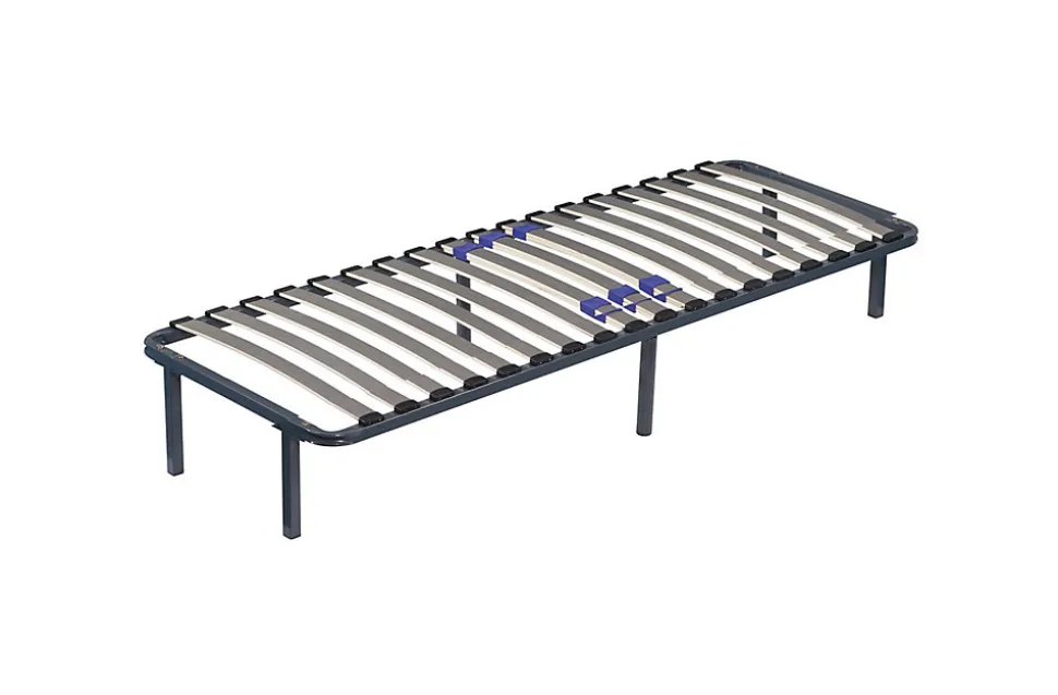Sommier Noir Cadre a lattes + 4 Pieds Caracteristiques: 1 Lit simple solide en metal, avec des lignes epurees, ce lit sera un ajout apprecie aux chambres et au salon, egalement ideal pour les petits espaces, les enfants, les adolescent, les invites et les adultes. 2 Un Sommier Noir solide avec lattes en placage multiplis Peuplier 5,3 cm de large et 0,9 cm d’epaisseur resistantes – Pieds Hauts en 25 cm 3 Resistant aux chocs et aux rayures epaisseur du Metal +/- 1,2 mm . revetement anti-rayures noir 4 Livraison rapide – Renforcé au niveau du bassin et reglage du confort 5 Extremement solides – Adapte aux collectivites Dortoirs Camping Hotel Gites S’il vous plait noter: * Le matelas n’est pas inclus. * Ne serrez pas les vis jusqu’a ce qu’elles soient completement assemblees. * Ne Pas utiliser ce produit si des pieces sont manquantes, endommagees ou usees. * Ne Pas permettre aux enfants de sauter sur le lit, car cela pourrait causer des dommages au chassis. * Veuillez verifier et serrer toutes les vis et boulons vers le haut tous les 3 mois pour assurer la stabilite.