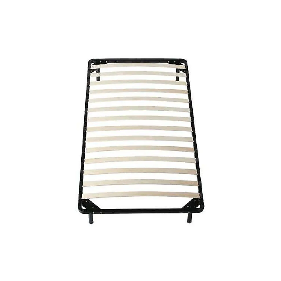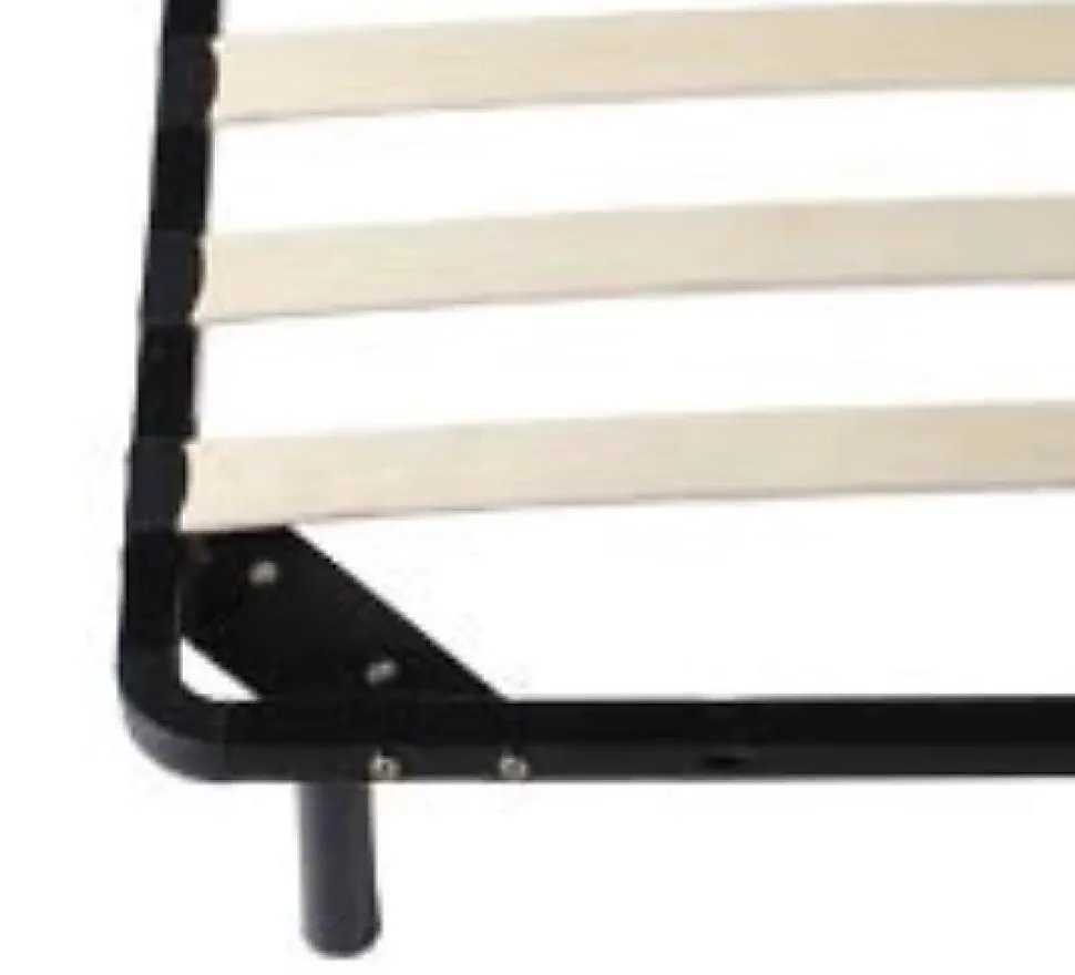 Sommier Cadre a lattes + 4 Pieds Caracteristiques: 1 Lit simple solide en metal, avec des lignes epurees, ce lit sera un ajout apprecie aux chambres et au salon, egalement ideal pour les petits espaces, les enfants, les adolescent, les invites et les adultes. 2 Un sommier solide avec lattes en placage multiplis Peuplier 5,3 cm de large et 0,9 cm d’epaisseur resistantes – Pieds Hauts en 25 cm 3 Resistant aux chocs et aux rayures epaisseur du Metal +/- 1,2 mm . revetement anti-rayures noir 4 Livraison rapide 5 Extremement solides – Adapte aux collectivites Dortoirs Camping Hotel Gites S’il vous plait noter: * Le matelas n’est pas inclus. * Ne serrez pas les vis jusqu’a ce qu’elles soient completement assemblees. * Ne Pas utiliser ce produit si des pieces sont manquantes, endommagees ou usees. * Ne Pas permettre aux enfants de sauter sur le lit, car cela pourrait causer des dommages au chassis. * Veuillez verifier et serrer toutes les vis et boulons vers le haut tous les 3 mois pour assurer la stabilite.