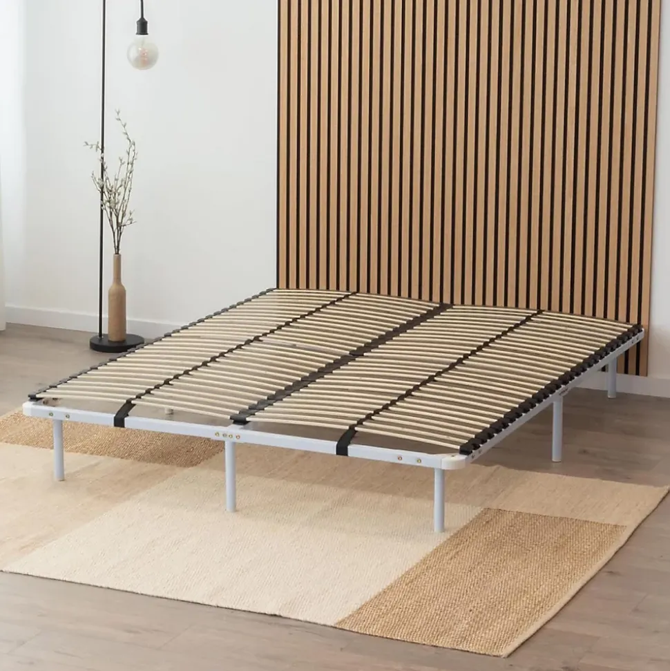 - Ce sommier à lattes robuste en acier offre une combinaison idéale de style et de confort.