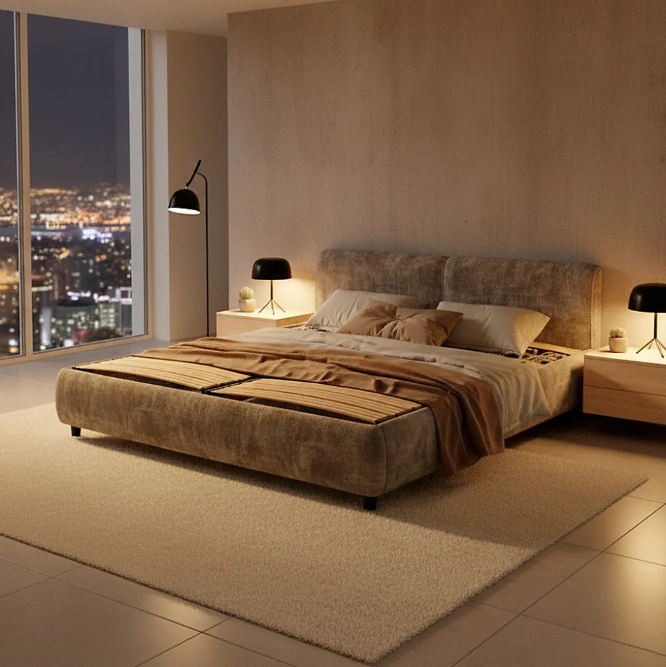 - Les supports de lattes sont équipés d’un revêtement anti-glissement pour que le matelas reste en place.
