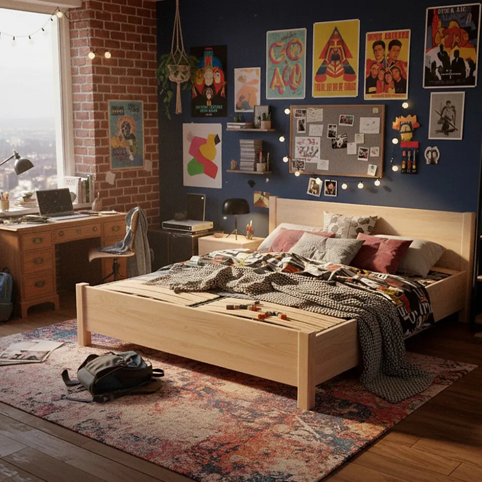 - Sommier à lattes avec plots de soutien pour un confort optimal.