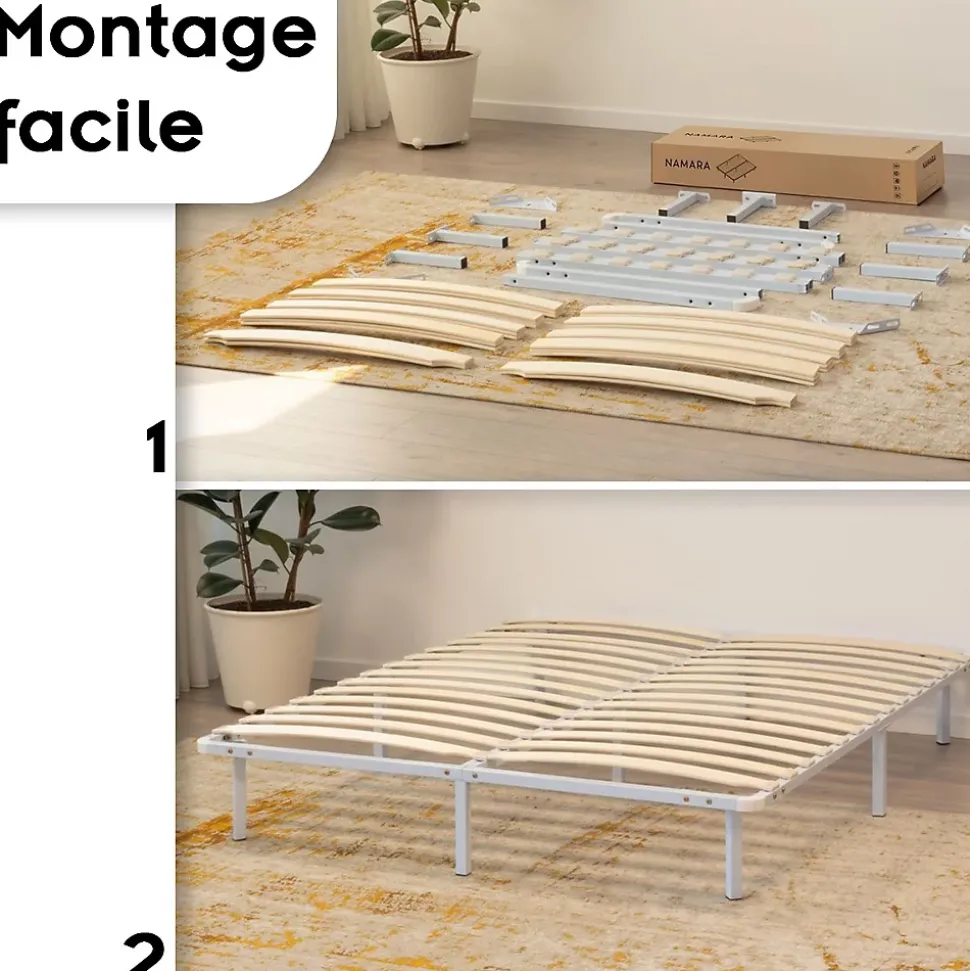 Sommier à Lattes Robuste Avec Pieds En Acier – Montage Facile – 160×200 Cm Blanc