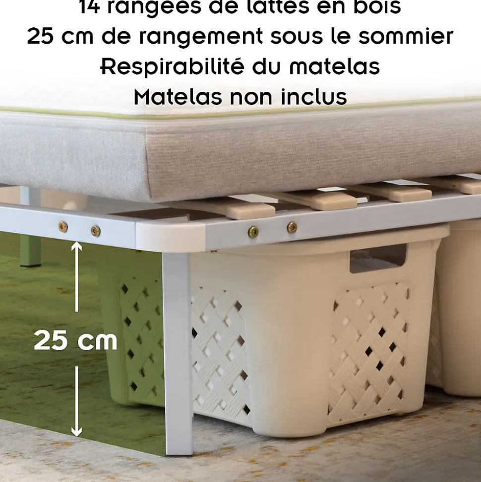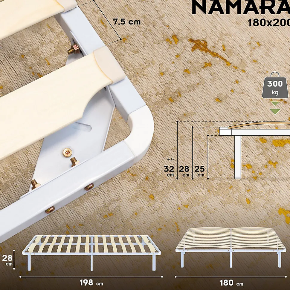Sommier à Lattes Robuste Avec Pieds En Acier – Montage Facile – 180×200 Cm Blanc