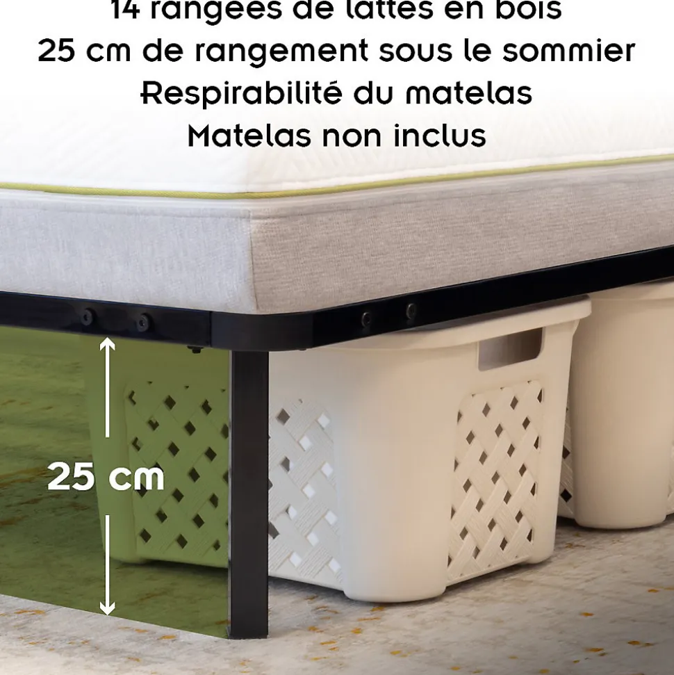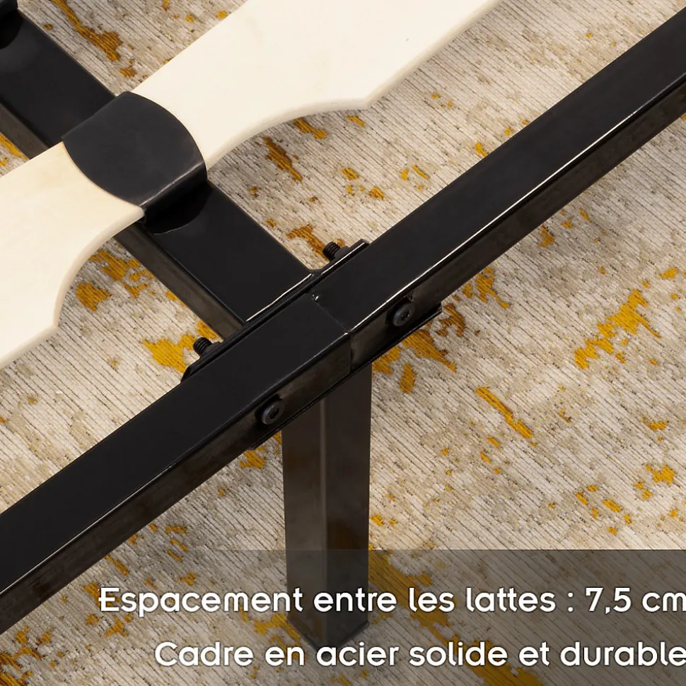 - Ce sommier à lattes en acier est robuste et résistant. Il offre une combinaison de fonctionnalité, de style et de confort.