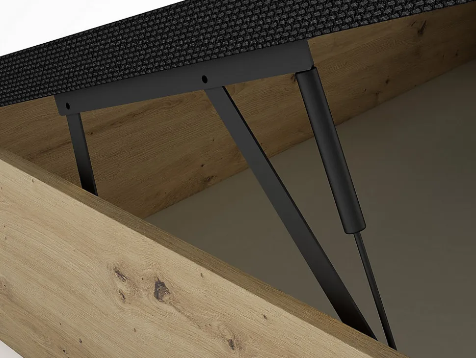 - Optez pour le sommier coffre NAMOSI 140 x 190 cm naturel clair et noir. Une grande capacité de rangement avec poignée et pistons à gaz pour une ouverture facile