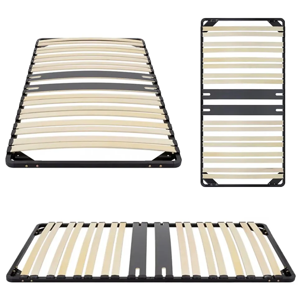 - Sommier ergonomique pour lit à lattes en bois. Renfort central avec 2 lattes assouplies au niveau du dos.