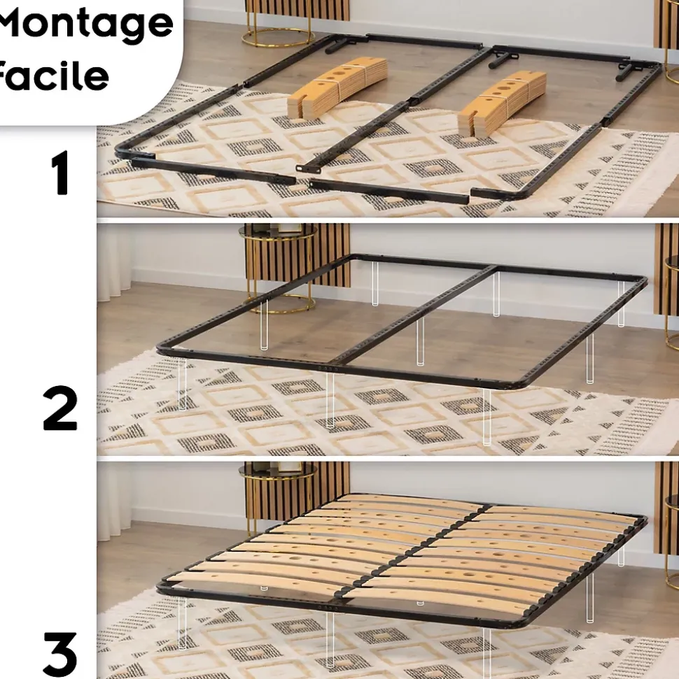 Sommier Ergonomique à Lattes Larges Et Flexibles En Bois De Bouleau 140×200 Cm Sans Pieds