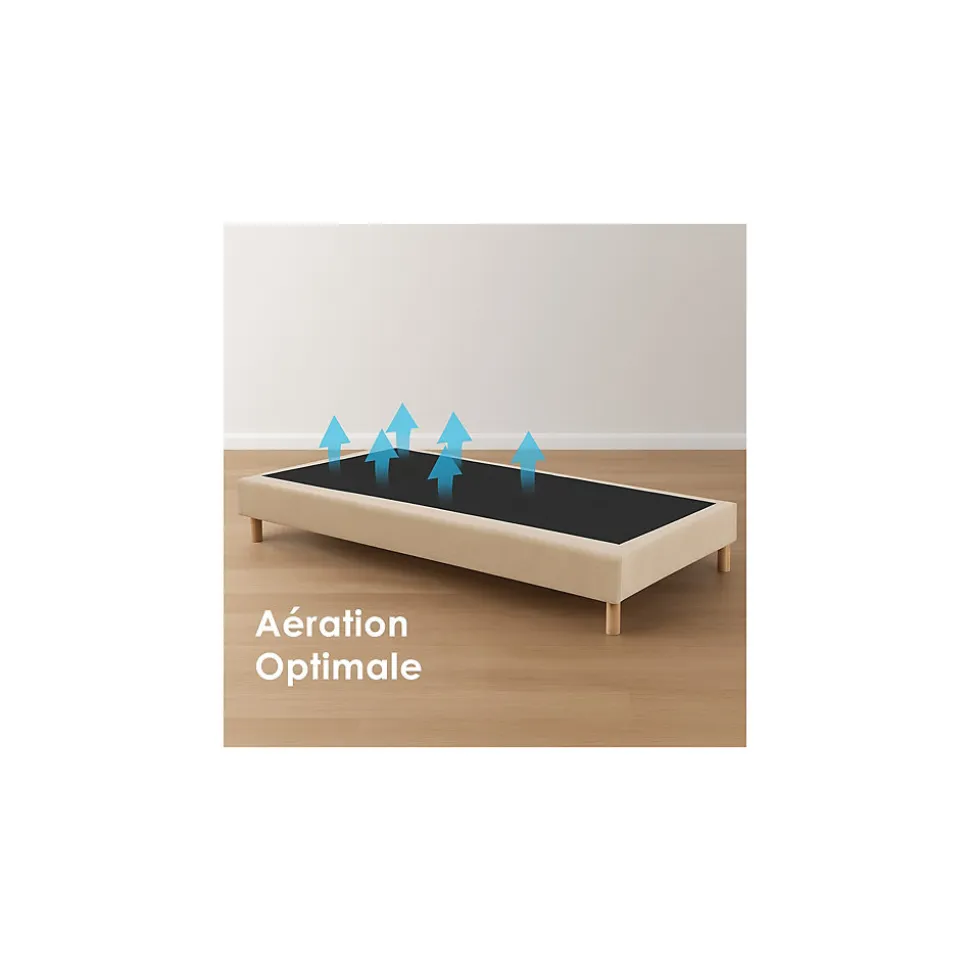 idliterie – Sommier tapissier 90×190 cmCe sommier tapissier de la marque idliterie est conçu pour un matelas de taille 90×190 cm et convient à une personne. De type soutien raffermit, ce sommier tapissier coffre à lattes passives est idéal pour un couchage simple. Fabriqué en bois et rembourré, il assure un confort optimal pour des nuits paisibles. Les pieds sont inclus pour une installation rapide et facile. Compatible avec tout type de matelas et spécifiquement conçu pour un sommier 1 personne, ce sommier de couleur beige est parfait pour une chambre à coucher classique.Caractéristiques du sommier :- Type de produit : sommier tapissier- Surface du matelas : 90×190 cm- Nombre de personnes : 1- Type de soutien : raffermit- Type de sommier : sommier tapissier- Facette : sommier coffre tapissier à lattes- Technologie du sommier : lattes passives- Taille du lit : simple cm- Rembourré- Matière de la structure : bois- Longueur du couchage : 190 cm- Longueur : 190 cm- Largeur du couchage : 90 cm- Largeur : 90 cm- Électrique : non électrique- Compatibilité avec tout type de matelas- Compatibilité avec sommier 1 personne- Couleur : beige- Avec/sans rangement : sans rangement- Pieds inclus