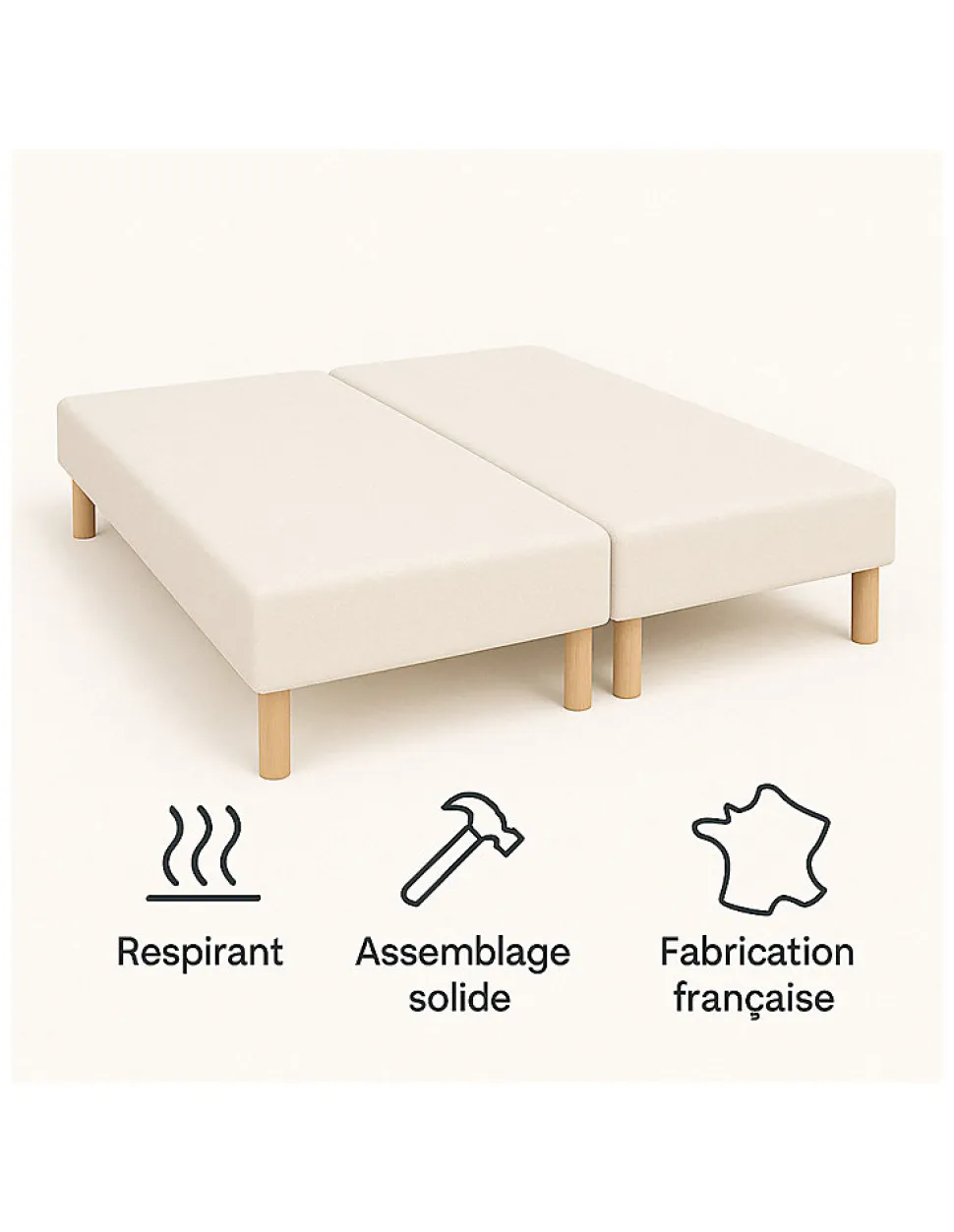 SOMMIER TAPISSIER BLANC 80x200x2 (160x200) FABRICATION FRANÇAISE ARTISANALE PIEDS OFFERTS HAUTEUR avec PIEDS 27 cm