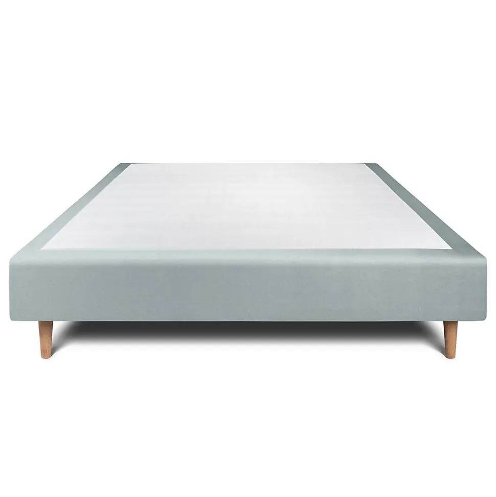 Sommier Tapissier Velours Gris bleuté 160x200 H35cm