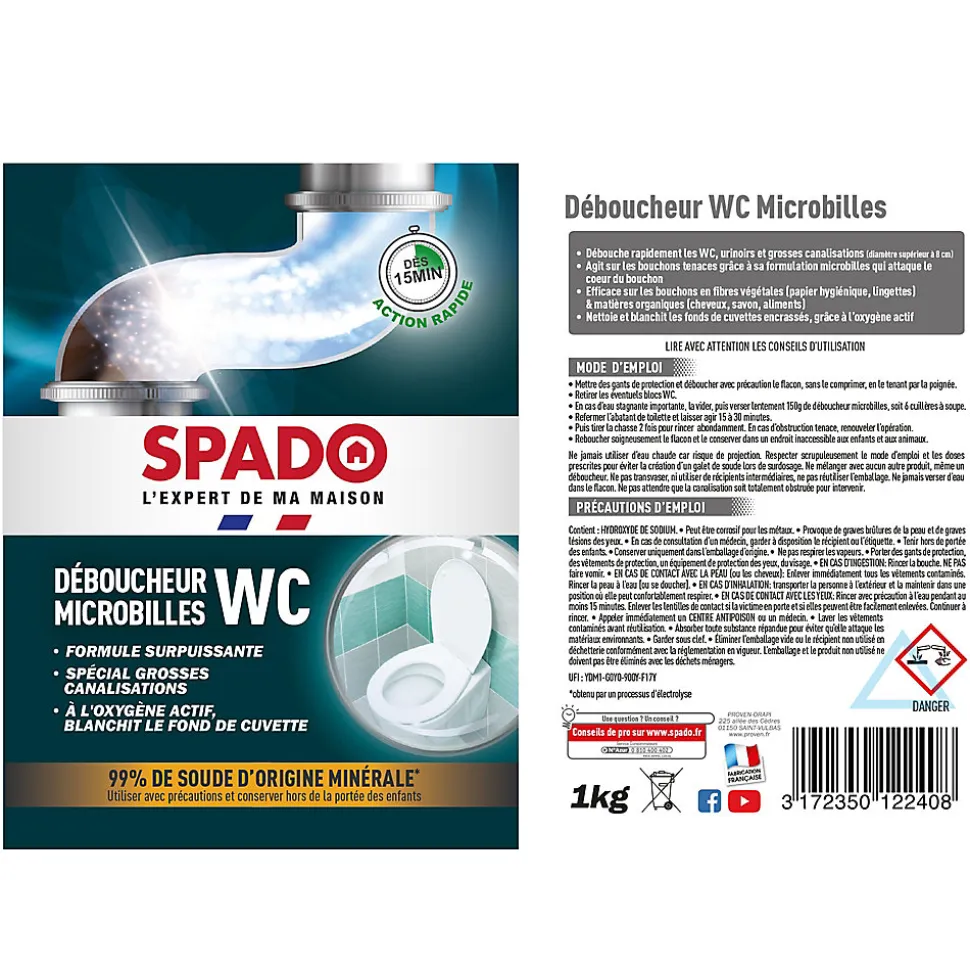 Spado déboucheur WC microbilles Spado 1kg