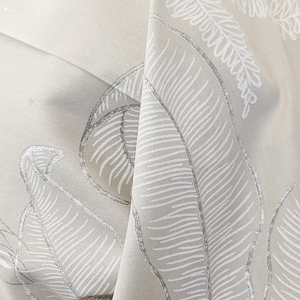 - Taie de traversin 200×43 cm satin de coton 110 fils/cm² CAYENNE beige ficelle parure de lit en satin de coton très qualitative et haut de gamme. Apporte une touche luxueuse avec ce motif végétation luxuriante tons sable sur fond beige ficelle.