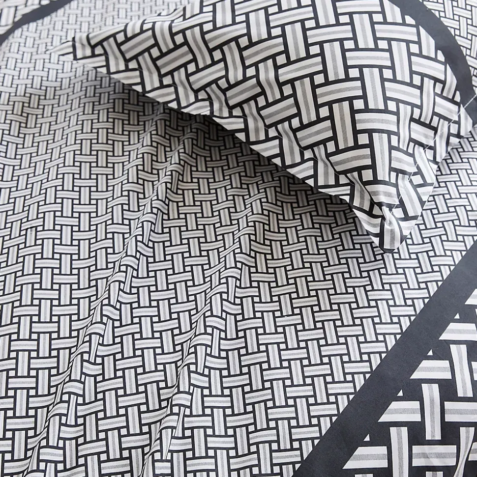 - Taie de traversin 43×240 cm Percale 80 fils/cm² RIVIERA Parure de lit percale de coton avec un motif graphique effet tissage de plusieurs tailles dans des tons noir, gris et blanc.