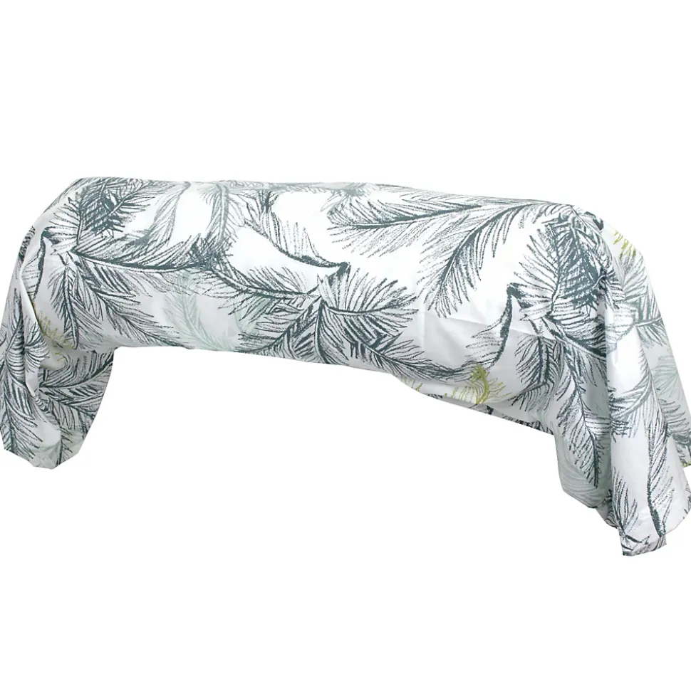 - Taie de traversin 43×240 cm Percale 80 fils/cm² TRINIDAD Parure de lit 100% coton avec un imprimé effet végétation luxuriante, dans des un camaieu de vert sur fond blanc.