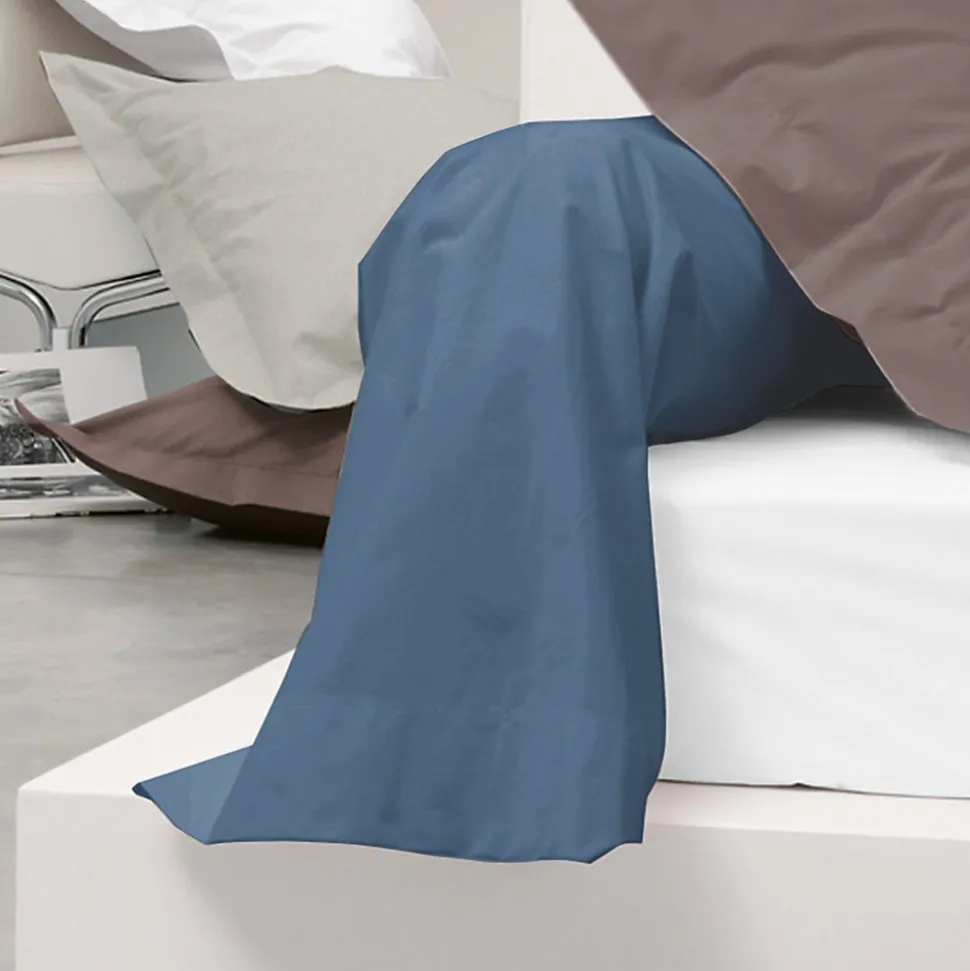 Taie de traversin 140x43cm coloris uni bleu Jean , collection ALTO 100% coton longues fibres peignées tissage 57 fils très serrés, avec traitement adoucissant Easycare (repassage facile) doux au toucher et très résistant, confectionné en France