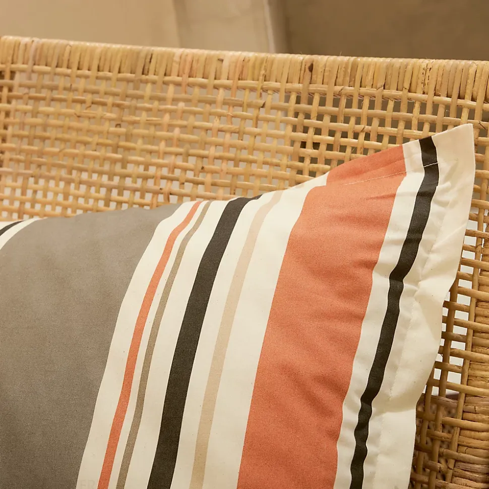 Achetez la taie d’oreiller 100% coton HUGO beige/corail à rayures.