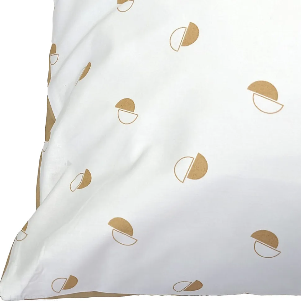 Taie d’oreiller carrée 65×65 cm Percale 80 fils/cm² ALEX Parure de lit 100% percale de coton avec des motifs géométriques imprimés de petites demi lunes dans des tons marron moka sur fond blanc.