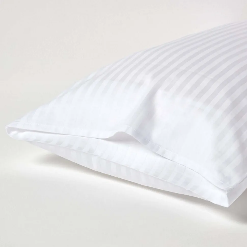 Taie d’oreiller rectangulaire 100 % Coton d’Égypte pour apporter de la douceur à votre literie. Le nombre de fils est une preuve de qualité et assure un tissu doux au toucher. Les rayures satinées de ce tissu noir sont très élégantes. Le design Housewife fait référence aux standards britanniques, dont les taies d’oreiller sont rectangles et sans volants. Homescapes vous propose la parure de lit dans le même coloris blanc et comptage de fils.
