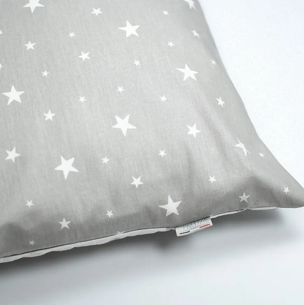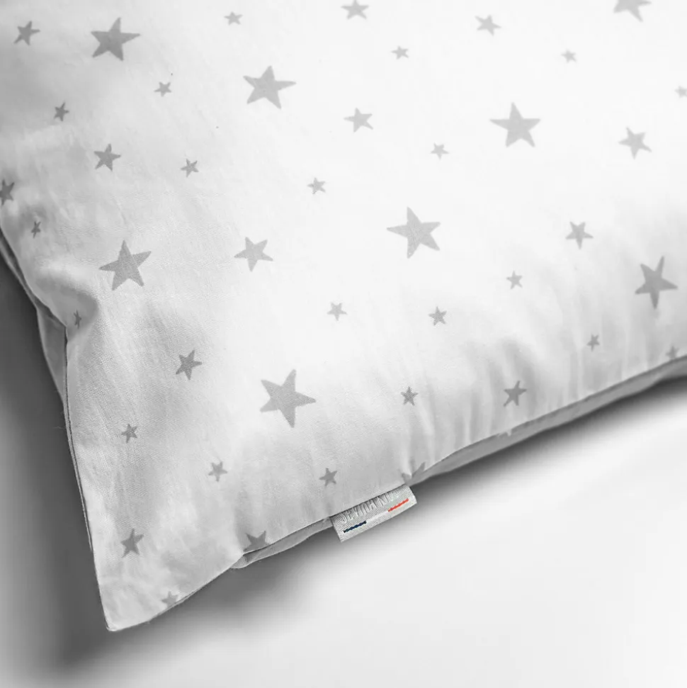 Une magnifique taie d’oreiller enfant en coton réversible et ses jolies petites étoiles pour envelopper de douceur votre bébé. 100% Made in France