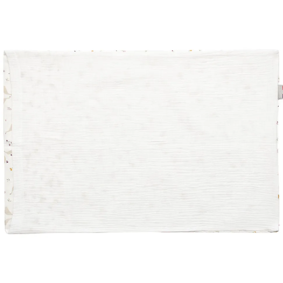 - Design réversible et esthétique : Une face en coton imprimé avec des motifs d’oies, de baies et de fleurs pour une touche poétique et l’autre en gaze de coton blanche minimaliste pour un look élégant et apaisant.