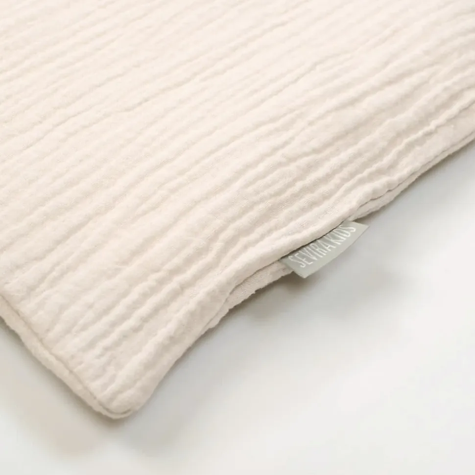 Taie d’Oreiller en Gaze de Coton Jeanne, 100% Made in France !CaractéristiquesTissu léger et confortableDisponible en 11 coloris élégants4 tailles standard disponibles : 35×40 cm, 40×60 cm, 50×70 cm et 63×63 cmFabriqué localement en France, à Compiègne, pour soutenir le savoir-faire français et réduire notre empreinte carbonePersonnalisationPersonnalisez votre taie d’oreiller avec un prénom brodé, pour une touche personnelle et un souvenir inoubliable. Chaque pièce est unique et confectionnée avec amour.Qualité et DurabilitéFabriquée avec des matériaux certifiés Reach, notre taie d’oreiller en gaze de coton garantit une douceur exceptionnelle et convient même aux peaux les plus sensibles. Notre engagement envers la qualité artisanale et les matières premières durables assure un environnement sain pour vous et votre famille.Collection Jeanne en Double GazeComplétez votre ensemble de literie avec les autres éléments de la collection Jeanne en double gaze de coton, tels que le drap housse, la couverture, le tour de lit, et plus encore. Harmonisez votre chambre avec style et élégance.Sevira Kids, marque française de linge de lit, s’engage à offrir des produits de qualité alliant tradition et innovation. Notre collection Jeanne en gaze de coton est une belle idée cadeau pour une chambre tendance et confortable.Note : La housse de couette est vendue séparément.