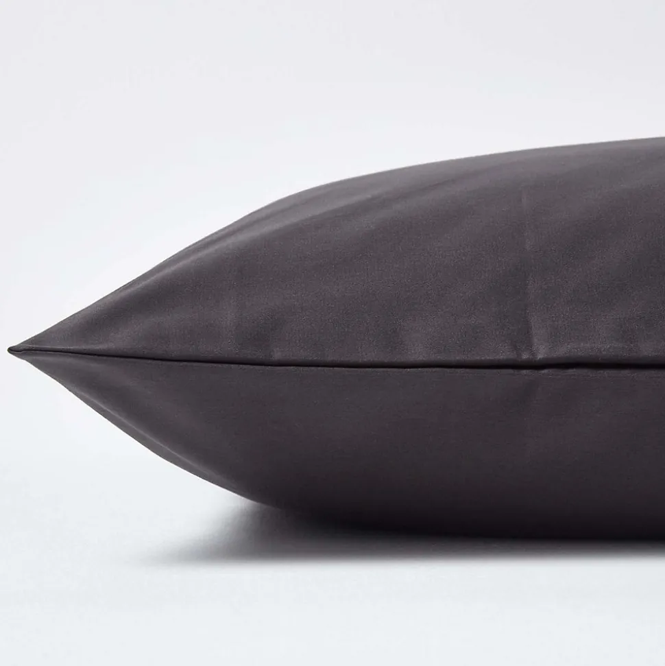 Taie d’oreiller gris foncé en satin de coton égyptien 1000 fils, 40×40 cm – HOMESCAPES