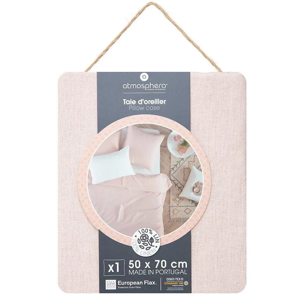 Taie d oreiller « Linah » lin lavé rose 50x70cmContenu : 1 taie d’oreillerDimensions : L. 70 x P. 0,3 x H. 50 cmColoris : RoseMarque : ATMOSPHERA CREATEUR D’INTERIEUR