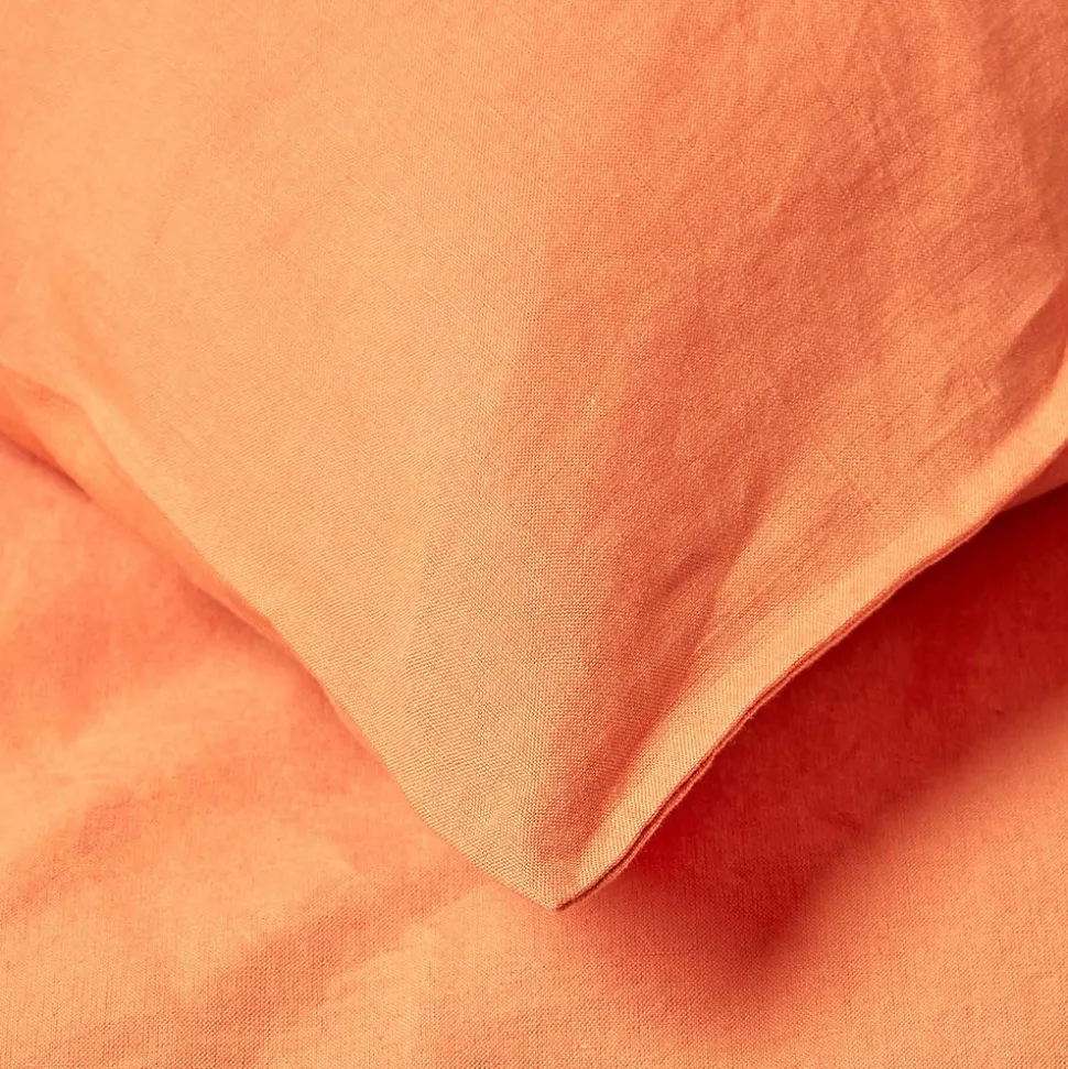 Taie d’oreiller orange en lin lavé, 40×80 cm – HOMESCAPES