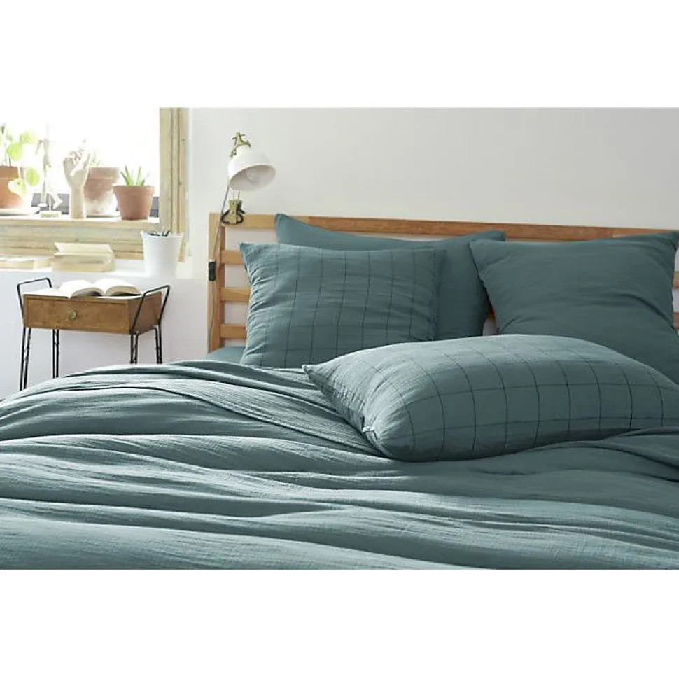 Taie d'oreiller Tissé-teint grands carreaux Déco "Gaïa Match" 60 x 60 cm & 50 x 70 cm "Gaze de Coton" - Gaïa Match Canard - 50 x 7