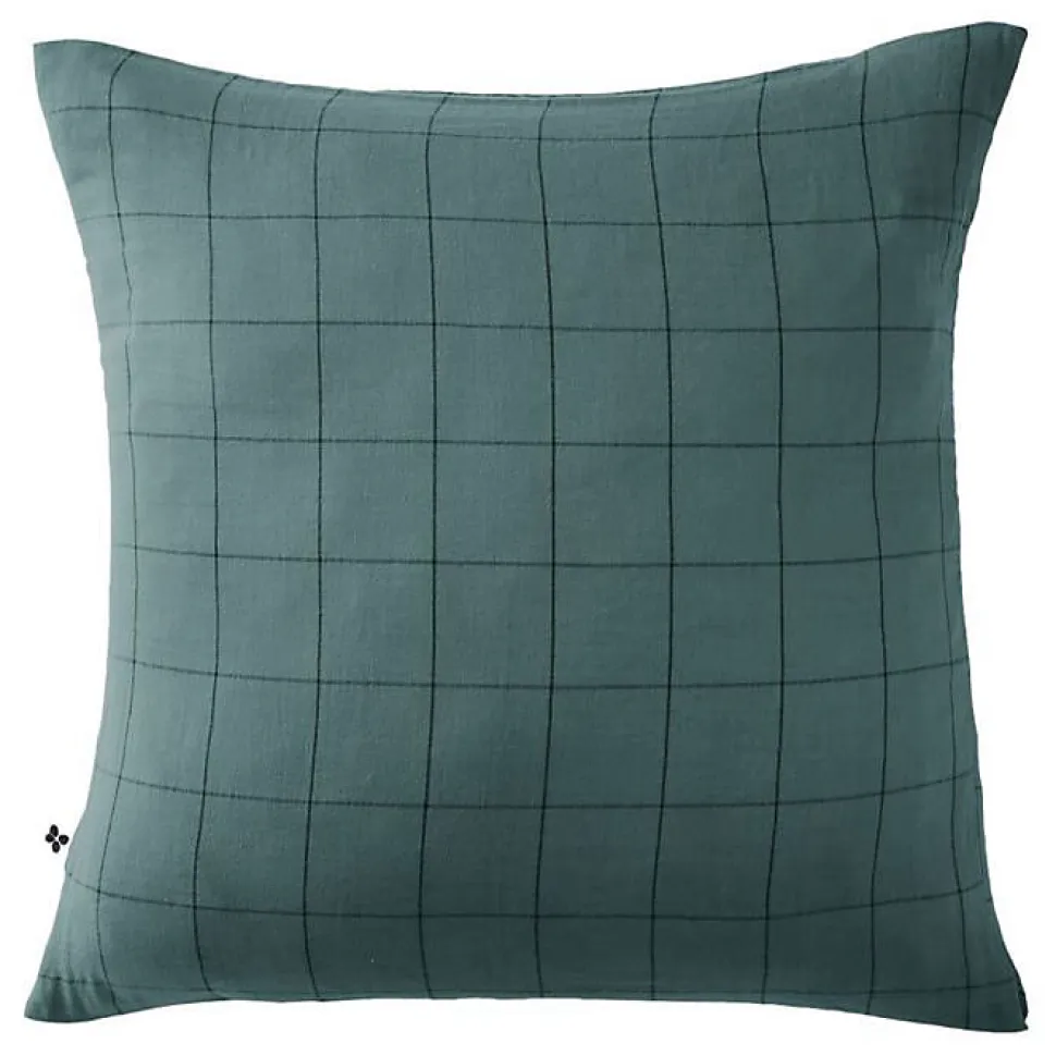 Taie d'oreiller Tissé-teint grands carreaux Déco "Gaïa Match" 60 x 60 cm & 50 x 70 cm "Gaze de Coton" - Gaïa Match Canard - 60 x 6