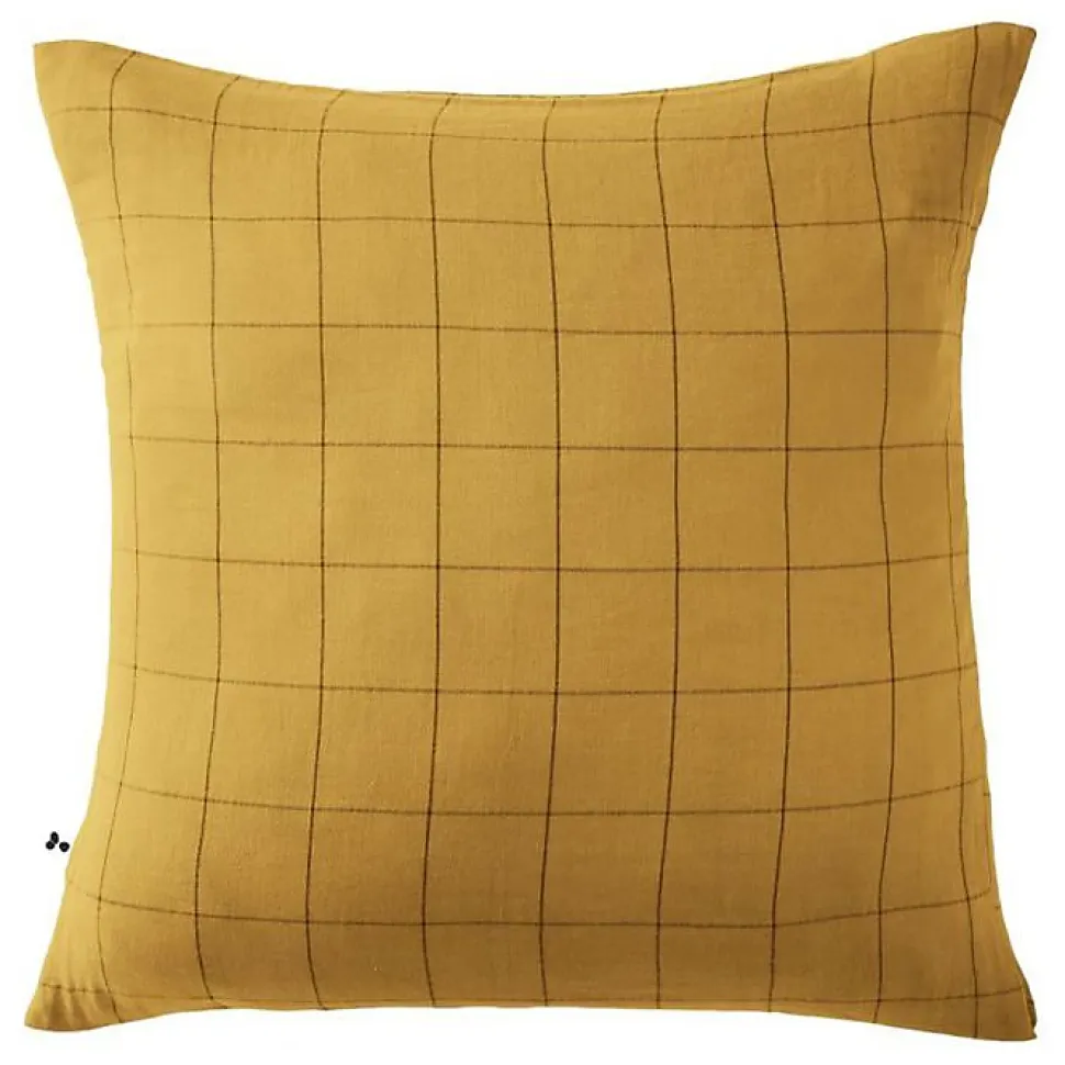 Taie d'oreiller Tissé-teint grands carreaux Déco "Gaïa Match" 60 x 60 cm & 50 x 70 cm "Gaze de Coton" - Gaïa Match Safran - 60 x 6