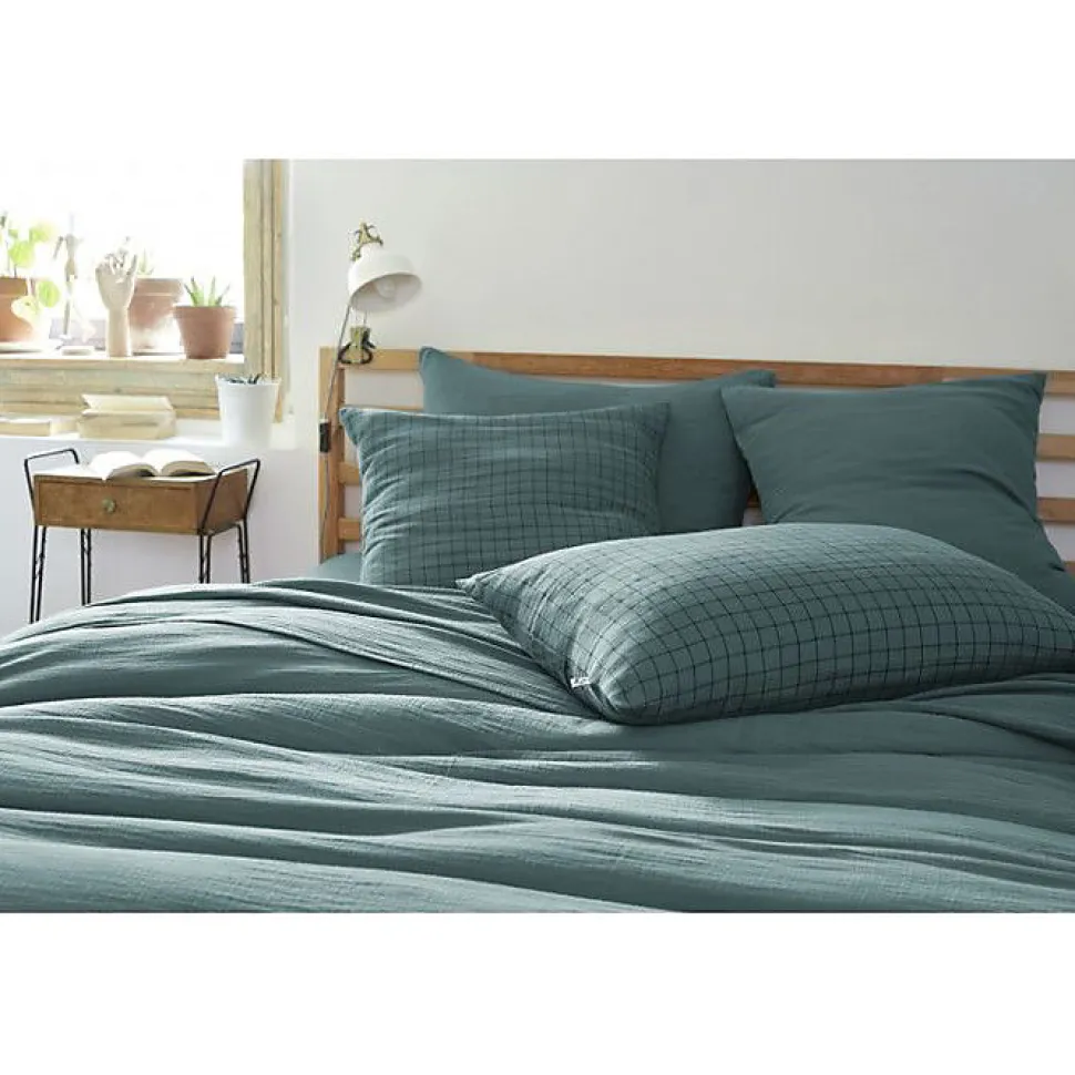 Taie d'oreiller Tissé-teint petits carreaux Déco "Gaïa Mix" 60 x 60 cm & 50 x 70 cm "Gaze de Coton" - Gaïa Mix Canard - 60 x 60 cm