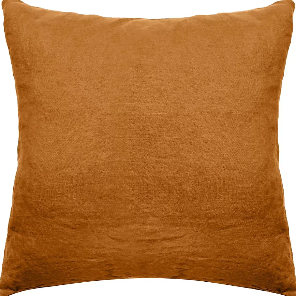 - taie d’oreiller lin,taie oreiller,65×65,65x65cm,coloris uni orange Terre Cuite