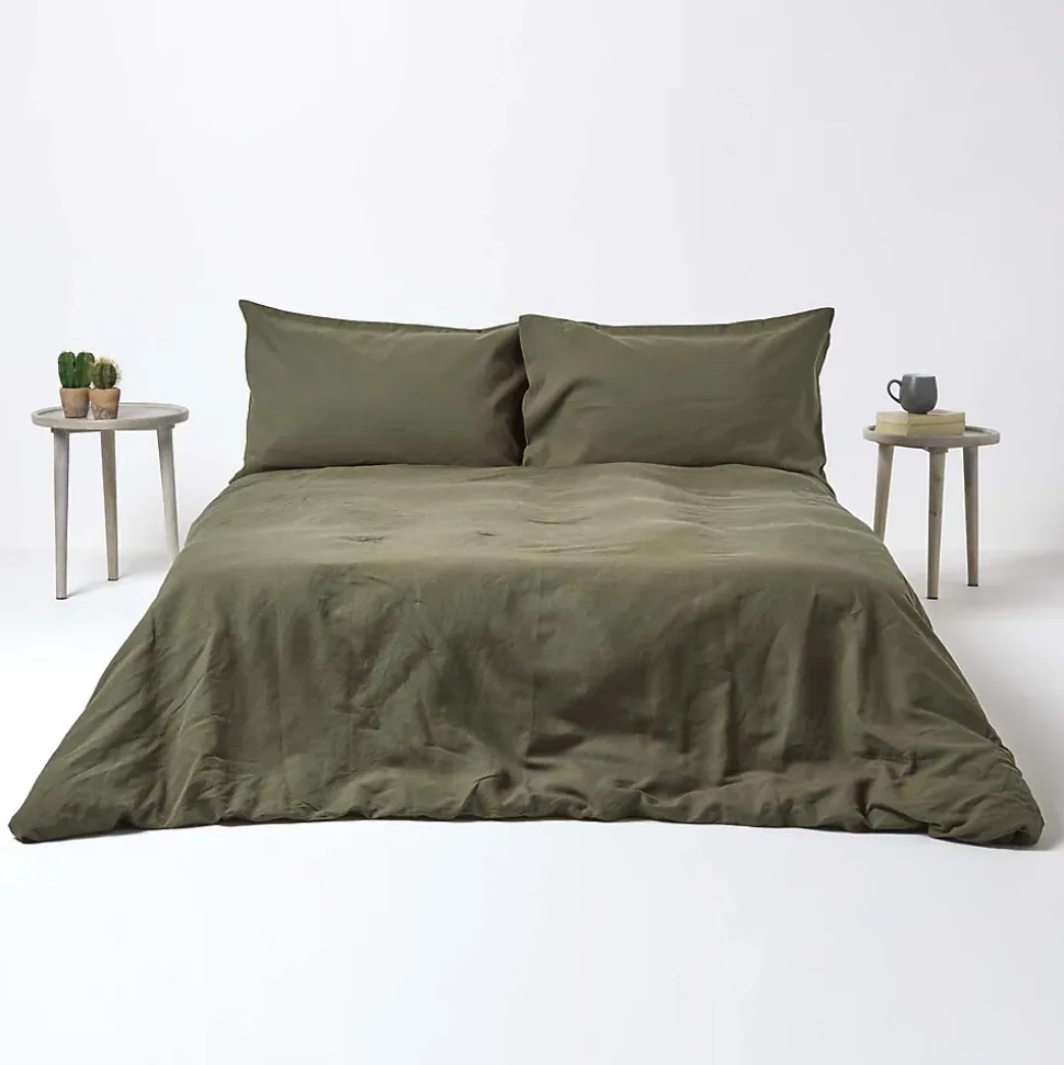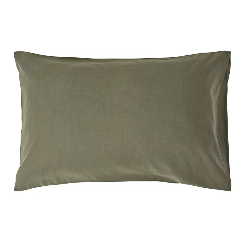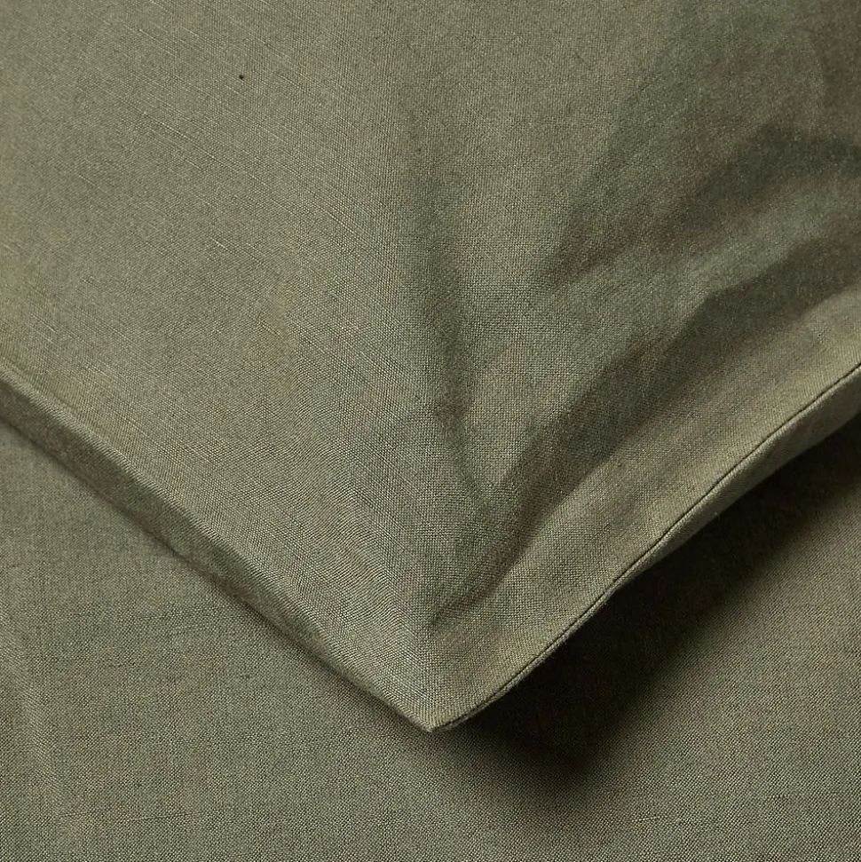 Taie d’oreiller vert mousse en lin lavé, 50×75 cm – HOMESCAPES