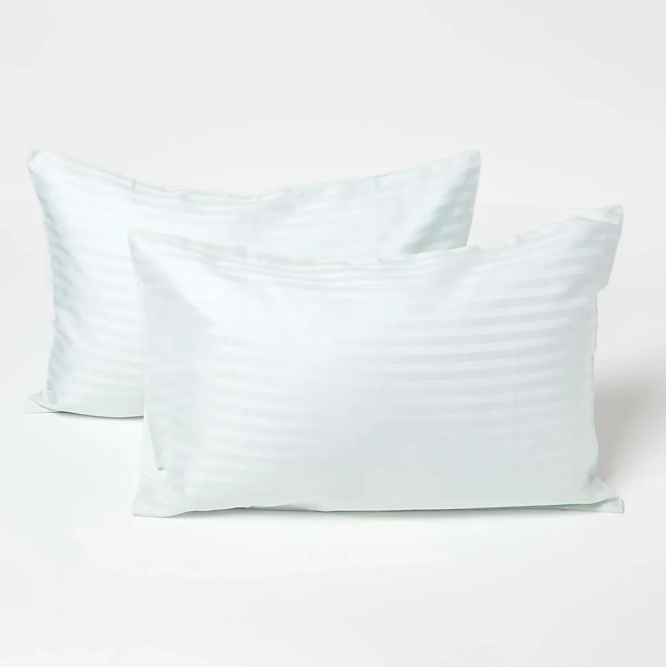 Taies d’oreiller enfant bleu satin rayé en coton égyptien 330 fils, 40×60 cm, lot de 2 – HOMESCAPES