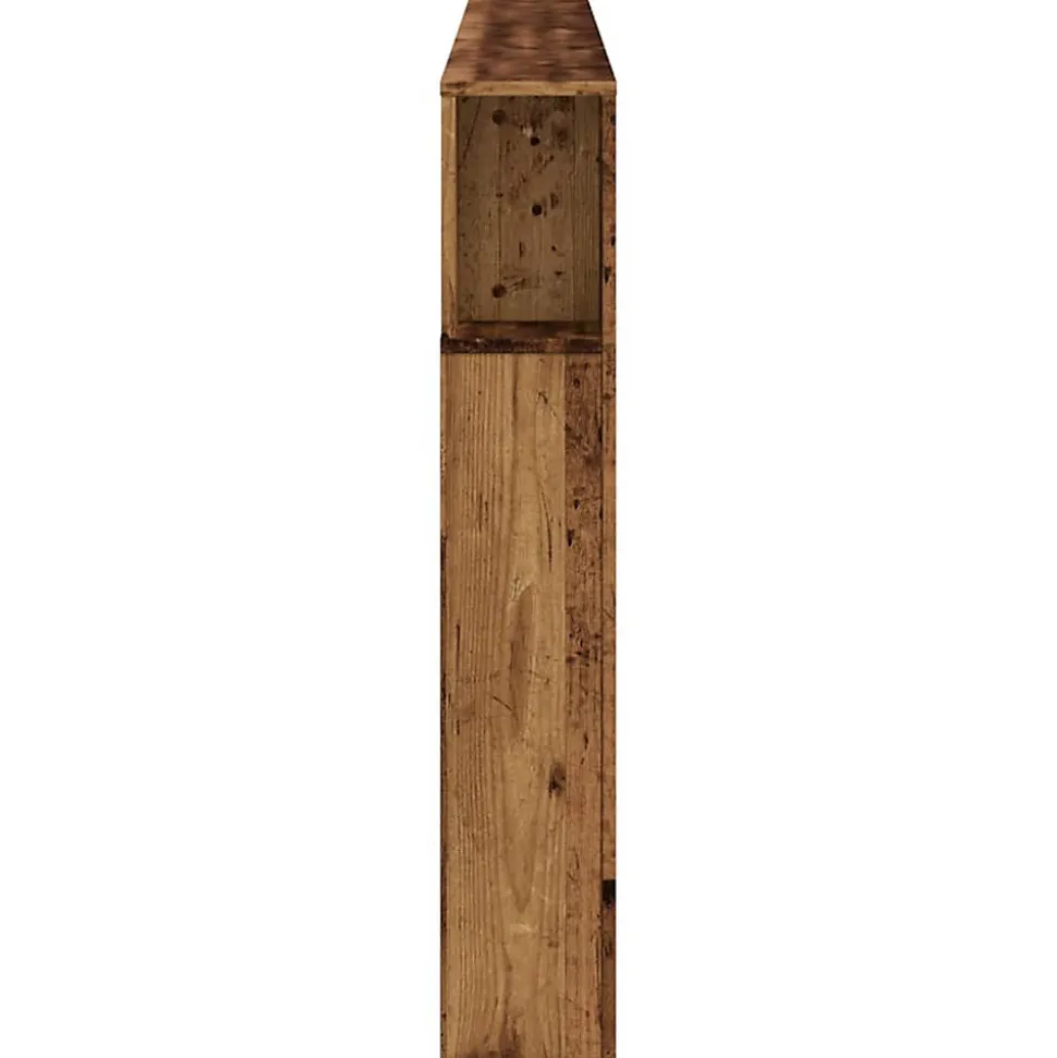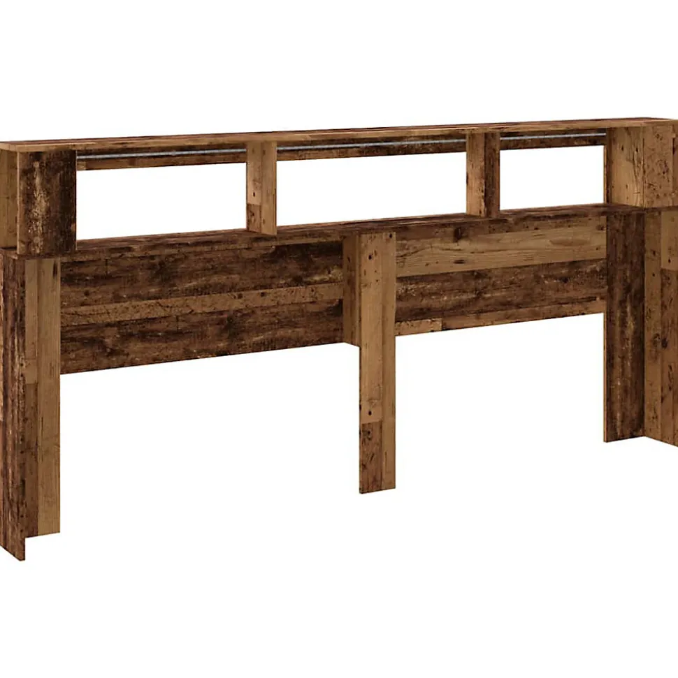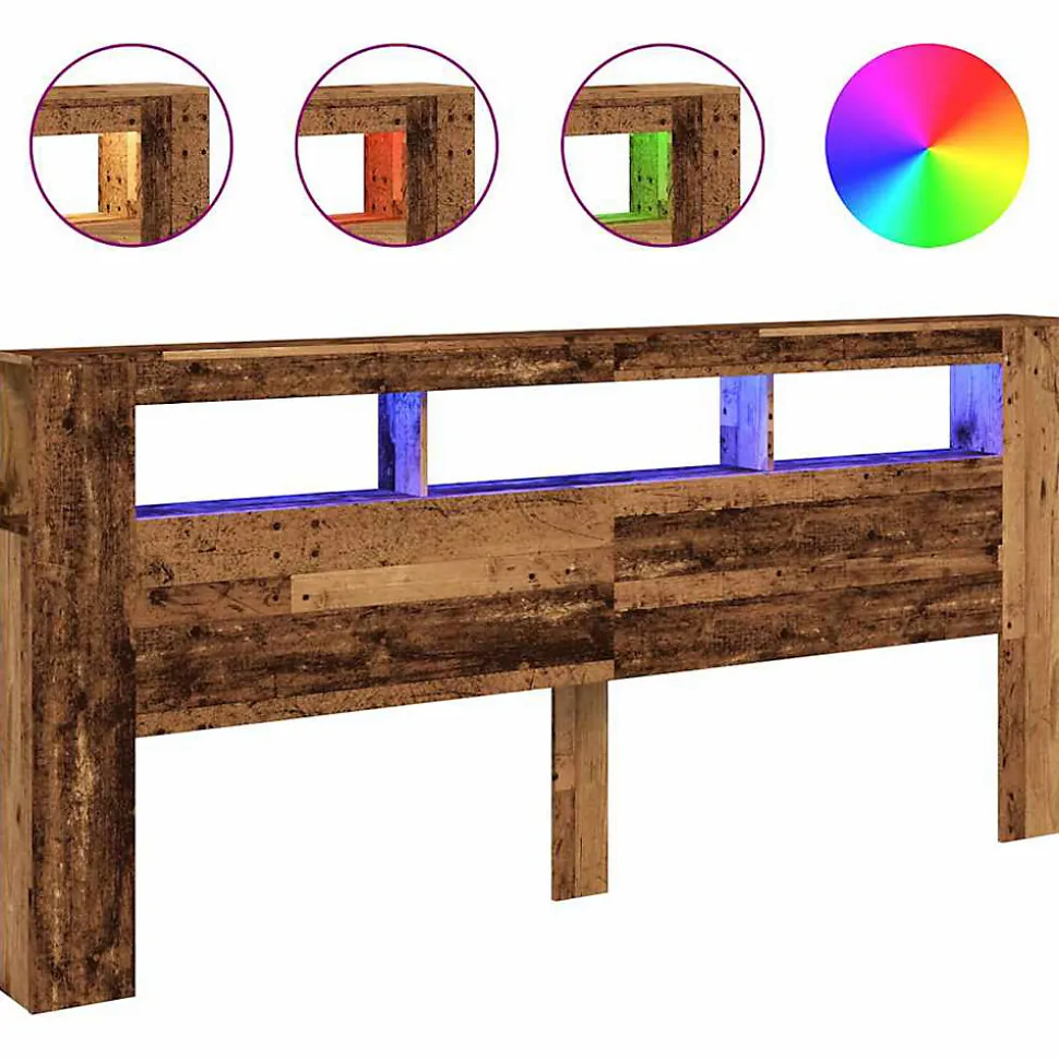 Cette tête de lit à LED classique, au design élégant, donne à votre cadre de lit une touche de modernité étonnante et convient parfaitement à toute chambre à coucher. Matériau durable : le bois d’ingénierie est d’une qualité exceptionnelle avec une surface lisse et présente également résistance, stabilité et résistance à l’humidité.Lumières LED RVB : la tête de lit est équipée de lumières LED RVB vibrantes. Avec divers menus personnalisables, vous pouvez changer sans effort la couleur des lumières et même les régler automatiquement. Ces lumières LED renforcent non seulement l’aspect contemporain de la tête de lit, mais ajoutent également à son attrait tendance.Excellent soutien : la tête de lit vous offre un excellent soutien dorsal lorsque vous vous asseyez dans votre lit pour lire ou regarder la télévision.Dessus stable : le dessus de la tête de lit avec rangement est parfait pour exposer vos objets décoratifs, cadres photos et réveils. Bon à savoir :La livraison comprend uniquement la tête de lit à LED. Le cadre de lit et le matelas ne sont pas inclus. Vous pouvez consulter notre boutique pour les cadres et matelas assortis.Ce produit est doté d’un connecteur USB qui nécessite une source d’alimentation USB de 5V certifiée (non incluse). Attention :Pour éviter qu’il ne bascule, ce produit doit être utilisé avec le dispositif de fixation murale fourni.Couleur : vieux boisMatériau : bois d’ingénierieDimensions : 220 x 18,5 x 103,5 cm (l x P x H)Assemblage requis : ouiLegal Documents:Vous trouverez ici plus de détails sur la façon d’empêcher vos meubles de basculer