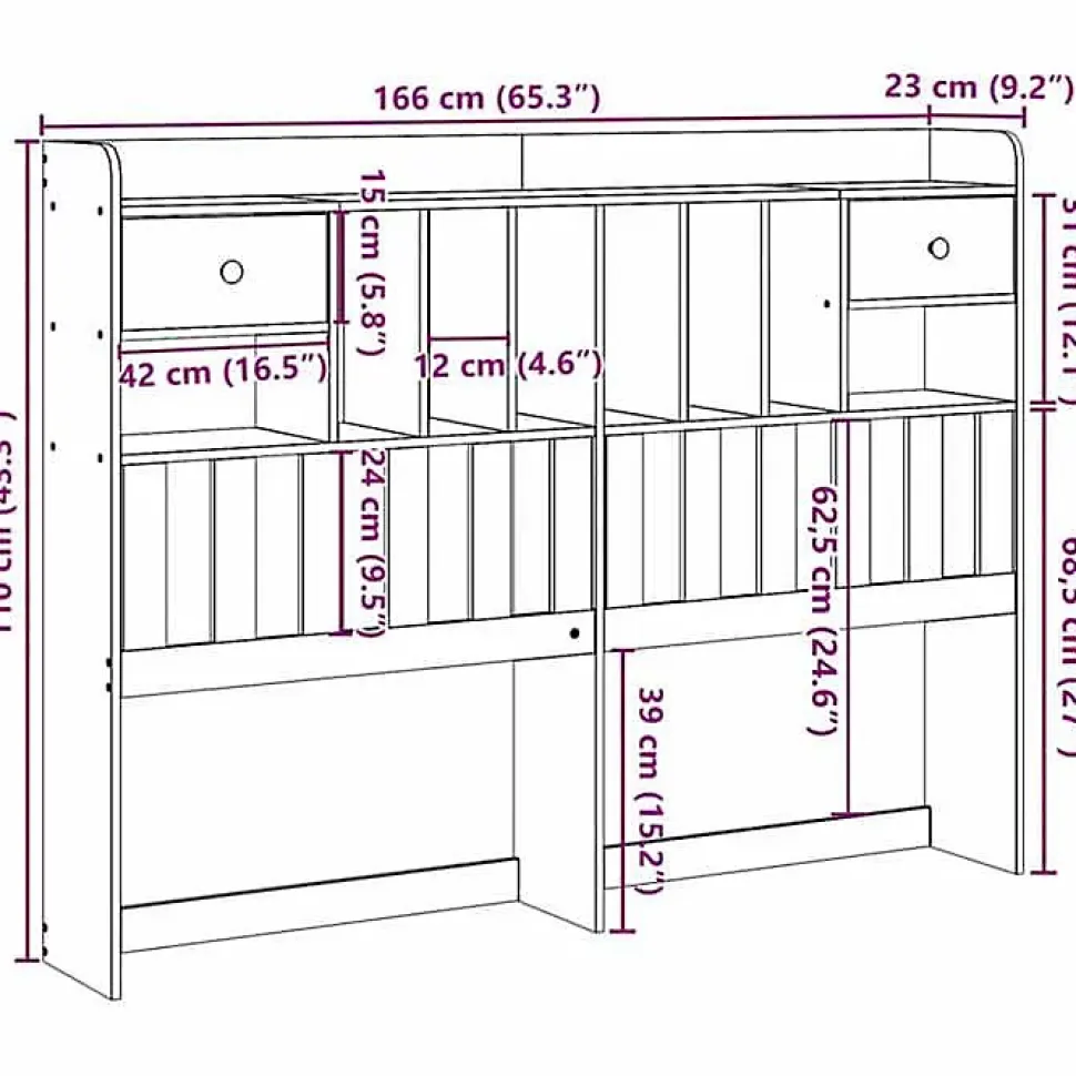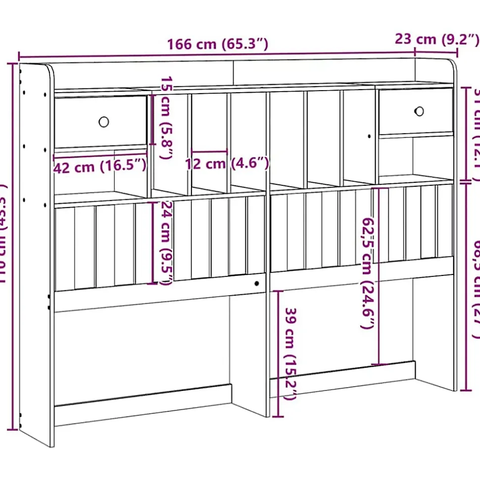 Cette tête de lit élégante donne à votre cadre de lit un aspect complet et s’adapte à n’importe quelle chambre à coucher. Cadre stable et durable : le bois de pin massif est connu pour sa résistance et sa durabilité. Ses grains droits et ses nœuds distinctifs contribuent à son charme rustique.Grand espace de rangement : la tête de lit élégante est dotée de 6 compartiments pratiques et de 2 tiroirs, offrant suffisamment d’espace de rangement pour garder tous vos essentiels de nuit à portée de main.Peu encombrant : cette tête de lit est une option peu encombrante qui peut remplacer la table de chevet, ce qui permet d’optimiser l’espace de votre chambre à coucher et la rend idéale pour les espaces restreints ou limités.Tête de lit sur pied : la tête de lit sur pied offre une solution simple pour un placement et un repositionnement sans effort, sans qu’il soit nécessaire pour l’installer au mur.Matériau : bois de pin massif (non traité)Dimensions : 186 x 23 x 110 cm (l x P x H)Convient à la largeur de matelas : 180 cmAvec compartiments de rangementAvec 2 tiroirsAssemblage requis : oui