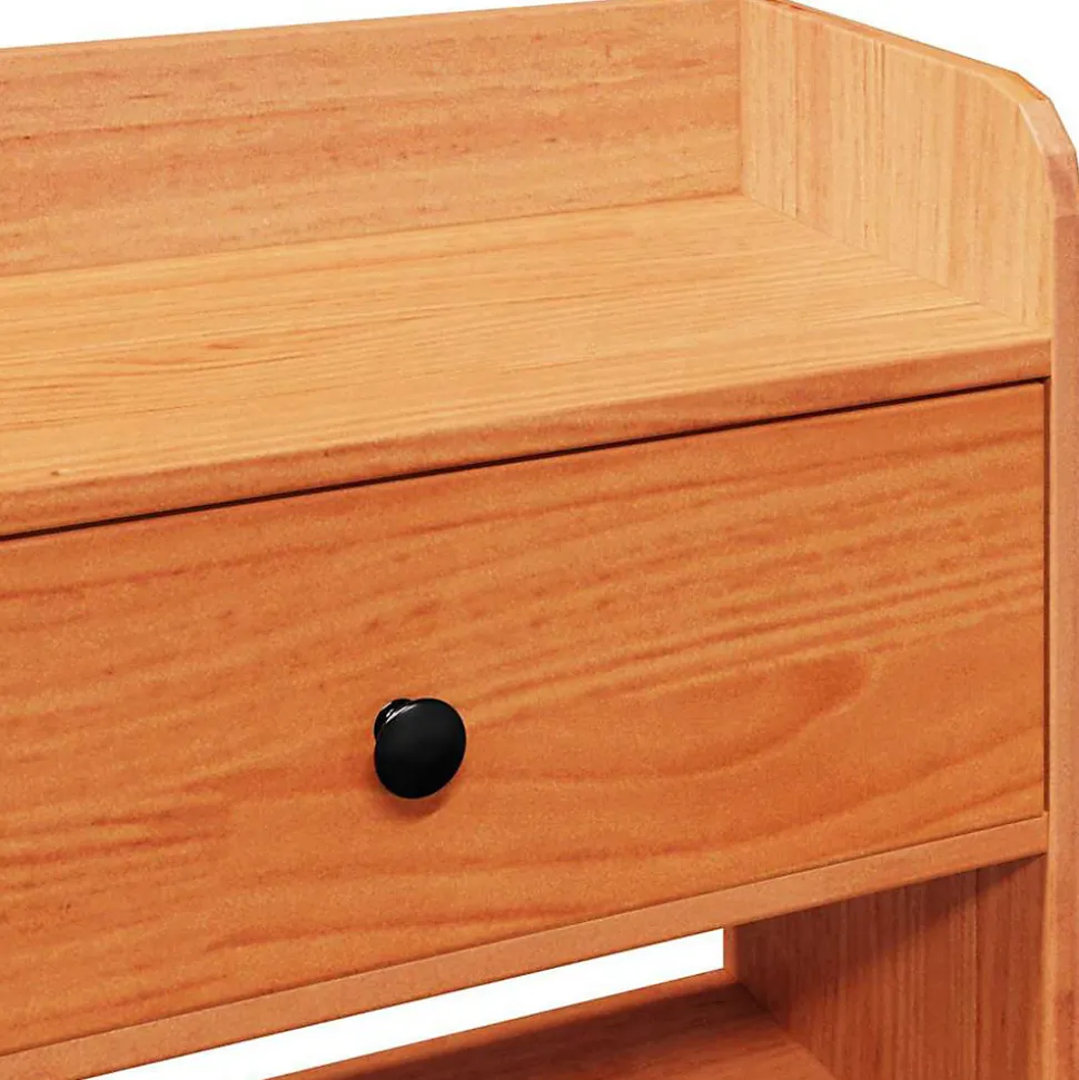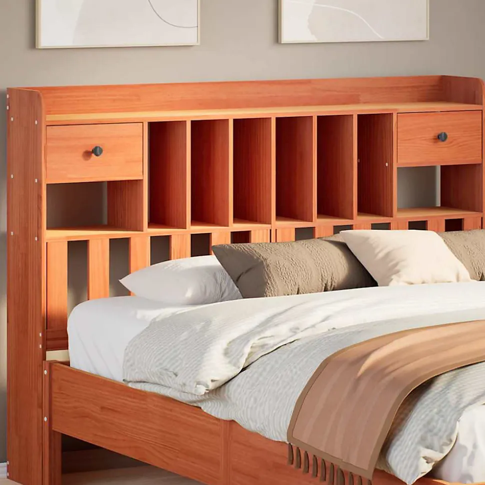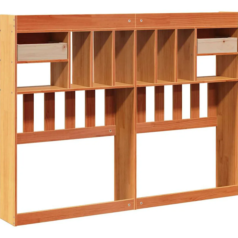 Cette tête de lit élégante donne à votre cadre de lit un aspect complet et s’adapte à n’importe quelle chambre à coucher. Cadre stable et durable : le bois de pin massif est connu pour sa résistance et sa durabilité. Ses grains droits et ses nœuds distinctifs contribuent à son charme rustique.Grand espace de rangement : la tête de lit élégante est dotée de 6 compartiments pratiques et de 2 tiroirs, offrant suffisamment d’espace de rangement pour garder tous vos essentiels de nuit à portée de main.Peu encombrant : cette tête de lit est une option peu encombrante qui peut remplacer la table de chevet, ce qui permet d’optimiser l’espace de votre chambre à coucher et la rend idéale pour les espaces restreints ou limités.Tête de lit sur pied : la tête de lit sur pied offre une solution simple pour un placement et un repositionnement sans effort, sans qu’il soit nécessaire pour l’installer au mur.Couleur : cire marronMatériau : bois de pin massifDimensions : 166 x 23 x 110 cm (l x P x H)Convient à la largeur de matelas : 160 cmAvec compartiments de rangementAvec 2 tiroirsAssemblage requis : oui