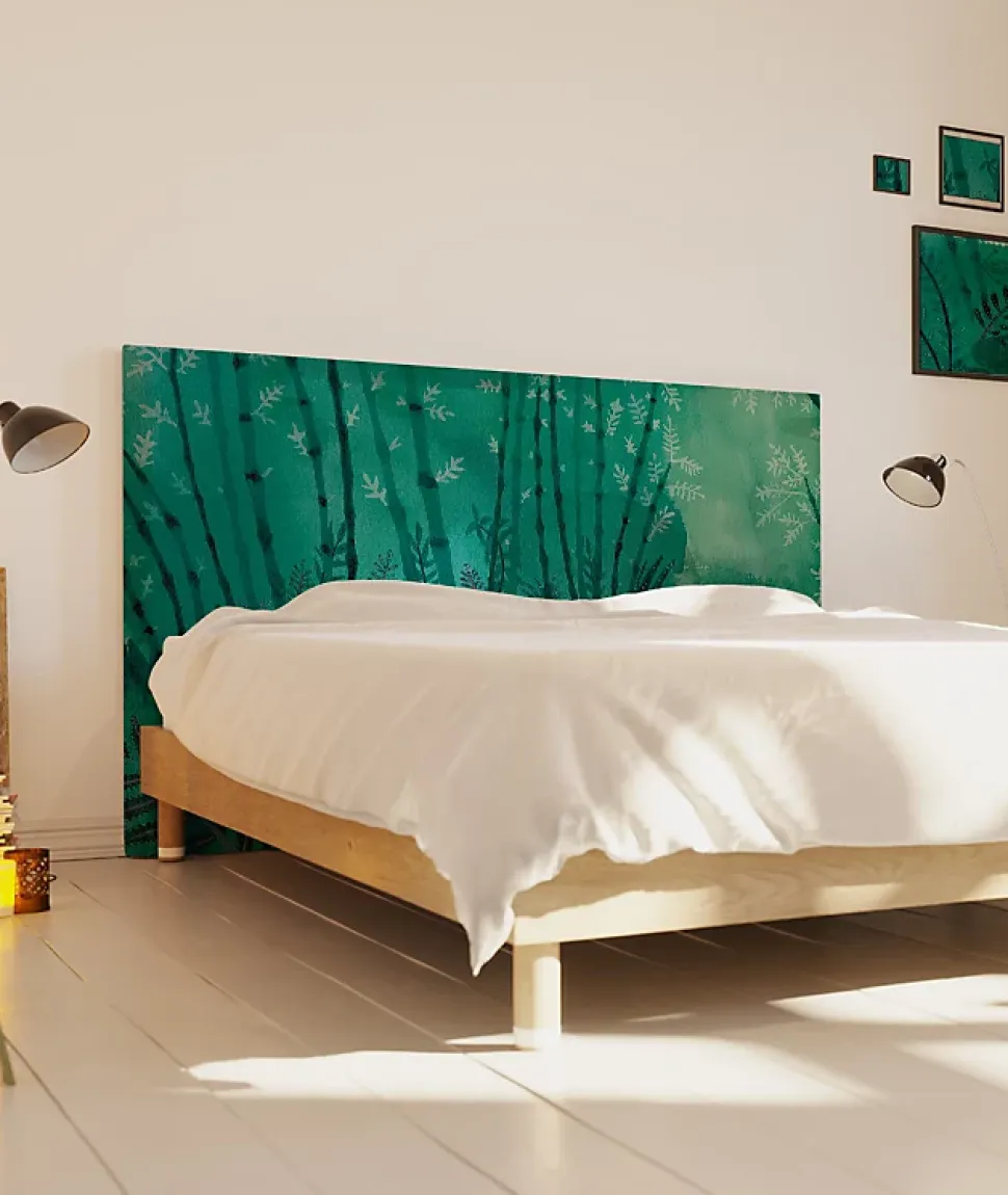CARACTERISTIQUES :Dimensions disponibles : 140×110 – 160×110 – 180x110Epaisseur : 8 cmHauteur : 110 cmDesign de la housse : Forêt – Suzy VergezFabrication : France (Housse) – Belgique (Structure)Entretien : Déhoussable (lavage en machine à 60°C)Garantie : 2 ansCOMPOSITION :Structure: 5 cm structure en bois MDF + 3 cm de ouate polyester confortable.Housse : Tissu polyester 220g/m² doux et soyeux, tissé, imprimé et confectionné dans les Vosges.POINTS FORTS :Style unique: Apporte un caractère unique et une touche d’élégance à la décoration de votre chambre.Installation très simple : Produit à poser directement sur le sol, entre le mur et votre lit.Design modulable : Changez facilement de housse pour varier les styles et suivre vos envies grâce à nos têtes de lits déhoussables aux housses interchangeables et simples à installer.Produit éthique : 10% de chaque vente sont reversés à l’artiste qui en a imaginé le design.Made in France : Housse designée et produite en France.