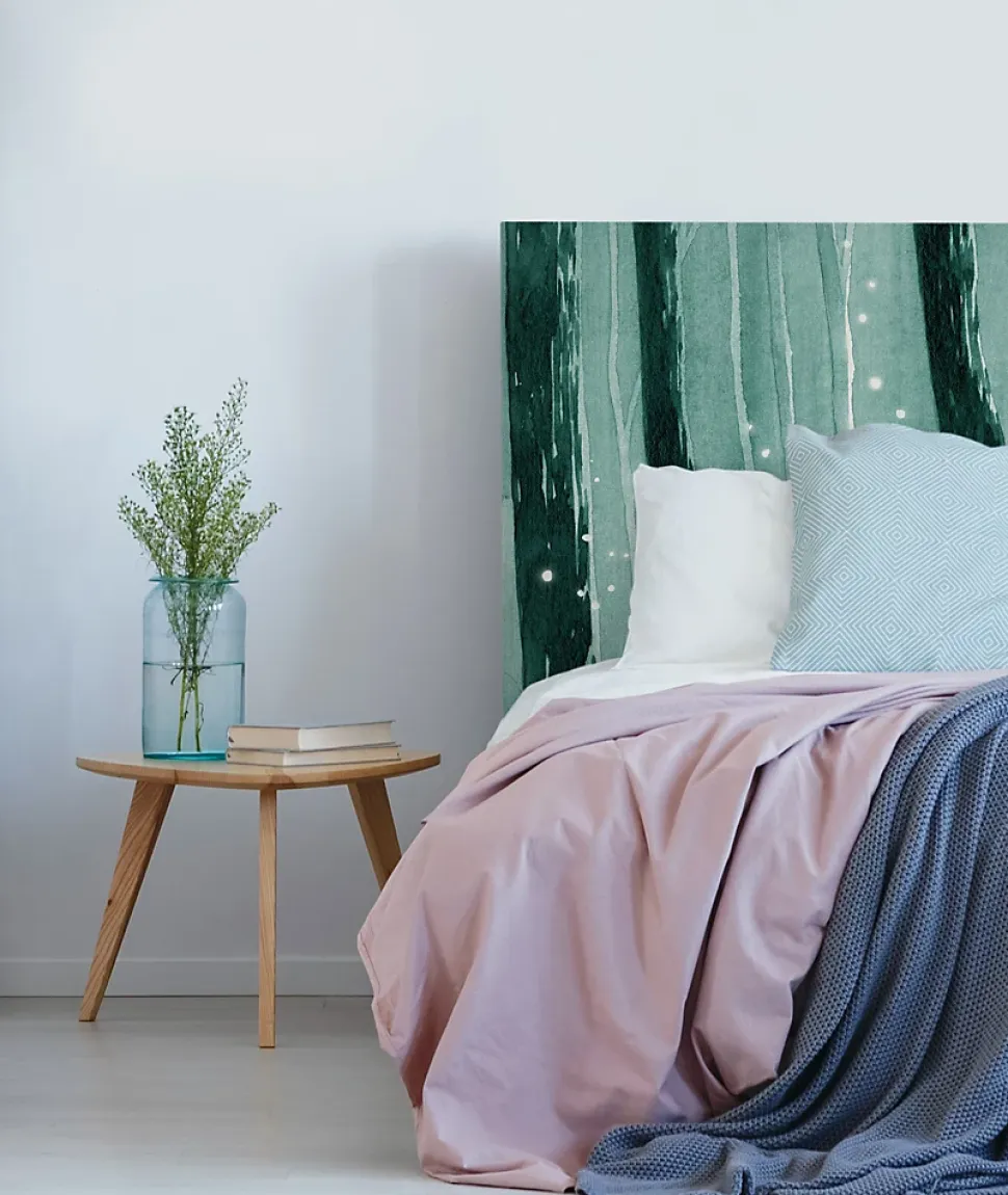 Plongez dans la forêt mystérieuse imaginée par l’artiste Mlle Terite et laissez-vous porter par l’ambiance de cette balade en plein coeur des bois, rythmée par le bal des lucioles.CARACTERISTIQUES :Disponible en 3 dimensions (cm) : 140 – 160 – 180Hauteur : 110 cmÉpaisseur : 8 cmDesign : Lucioles – Mlle TeriteColoris disponibles : Noir – Bleu – VertFabrication : France (housse) et Belgique (structure) Livrée houssée à platCOMPOSITION :Structure : Epicéa + ContreplaquéHousse : Tissu polyester 228 gr/m² confectionné dans les VosgesGarnissage : 2 cm de mousse polyuréthane 17 kg/m³ + 2 cm de ouate polyester 200 gr/m²Fond : Tissu non tissé 70 gr/m²POINTS FORTS :Design unique :- Création originale par un artiste pour une touche authentique- Valorisation du savoir-faire artistique français- Idéal pour une décoration raffinée et personnaliséeHousse Made in France :- Qualité supérieure et respect de normes strictes- Production éthique (10% de chaque vente sont reversés à l’artiste qui en a imaginé le design)Confort et praticité :- Housse amovible pour un entretien facile (60°C en machine) et la possibilité de changer de style- Épaisseur de 8 cm pour un bon équilibre entre confort et esthétique- Hauteur de 110 cm adaptée pour un effet élégant et un bon maintien du dosInstallation facile :- Pose directement au sol, entre le mur et votre lit