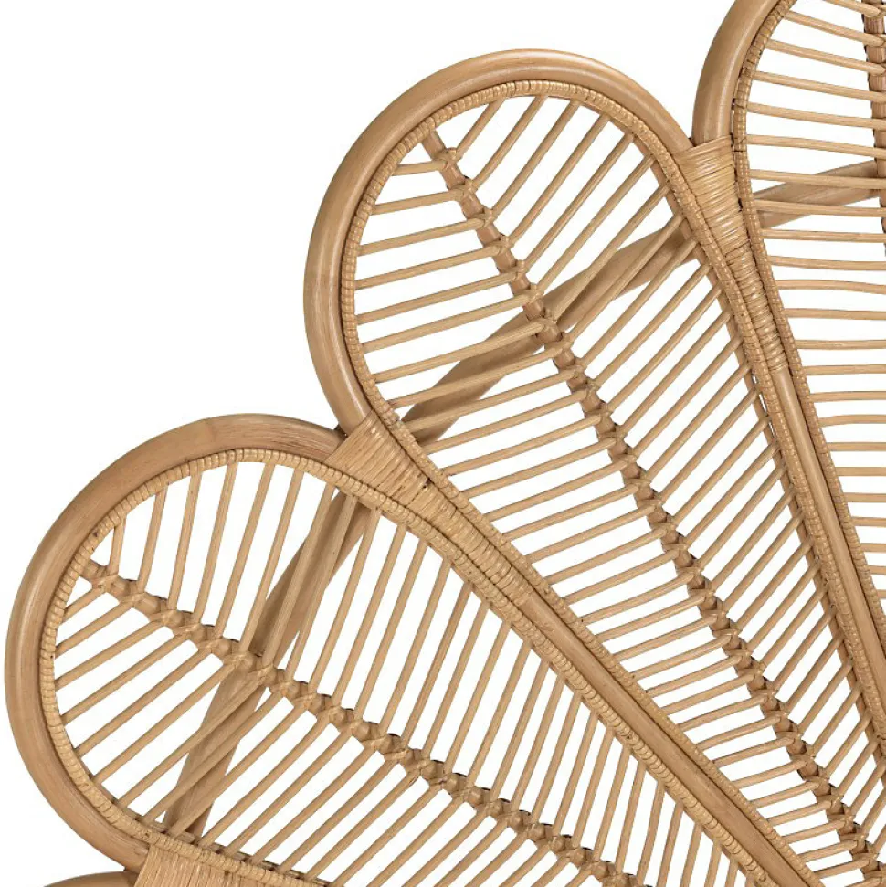 Tête de lit demi-lune 140/160cm ‘fleur’ rotin couleur brun miel. Article en rotin. Dimension 180 x 6 x 146 cm.