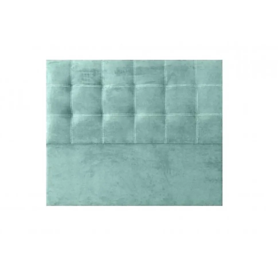 Tête de lit en tissu antitache vert iris, 145 cm de largeur et 120 cm de hauteur. Fabriquée à la main, elle allie élégance et durabilité grâce à sa structure en pin de Galice et son rembourrage en mousse HR. Créez une atmosphère chaleureuse dans votre chambre avec ce design contemporain.